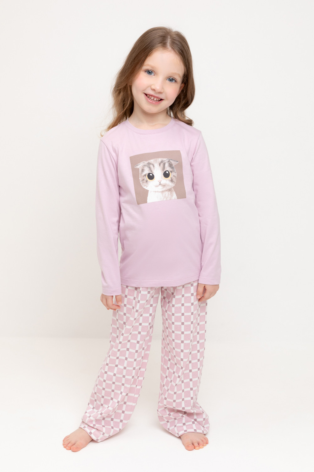 Трикотажная пижама из натурального хлопка. Джемпер с длинными втачными рукавами и прямые брюки с эластичной резинкой в поясе. Оригинальные набивка и принт выполнены из стойких гипоаллергенных текстильных гипоаллергенных красителей. Изделие сохраняет цвет и форму после многократных стирок. Все трикотажные полотна производятся в соответсвии с нормами швейцарского сертификата ЭкоТекс.