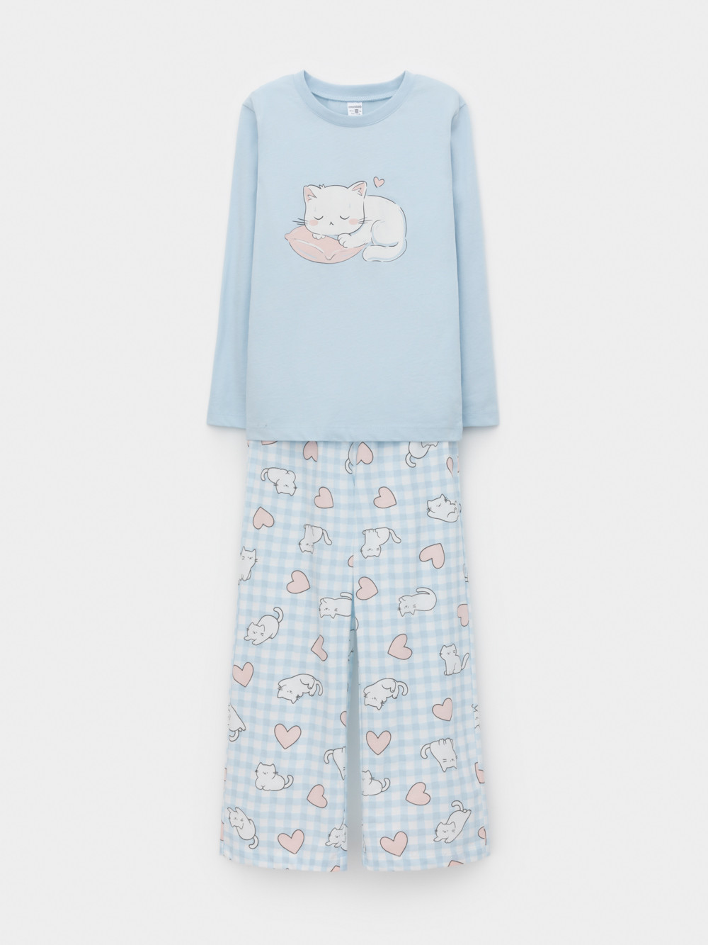 пижама для девочки К 1623/голубое стекло,кошки на пикнике
