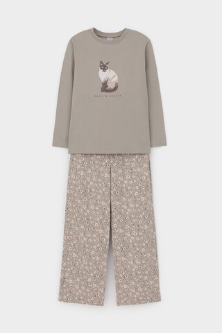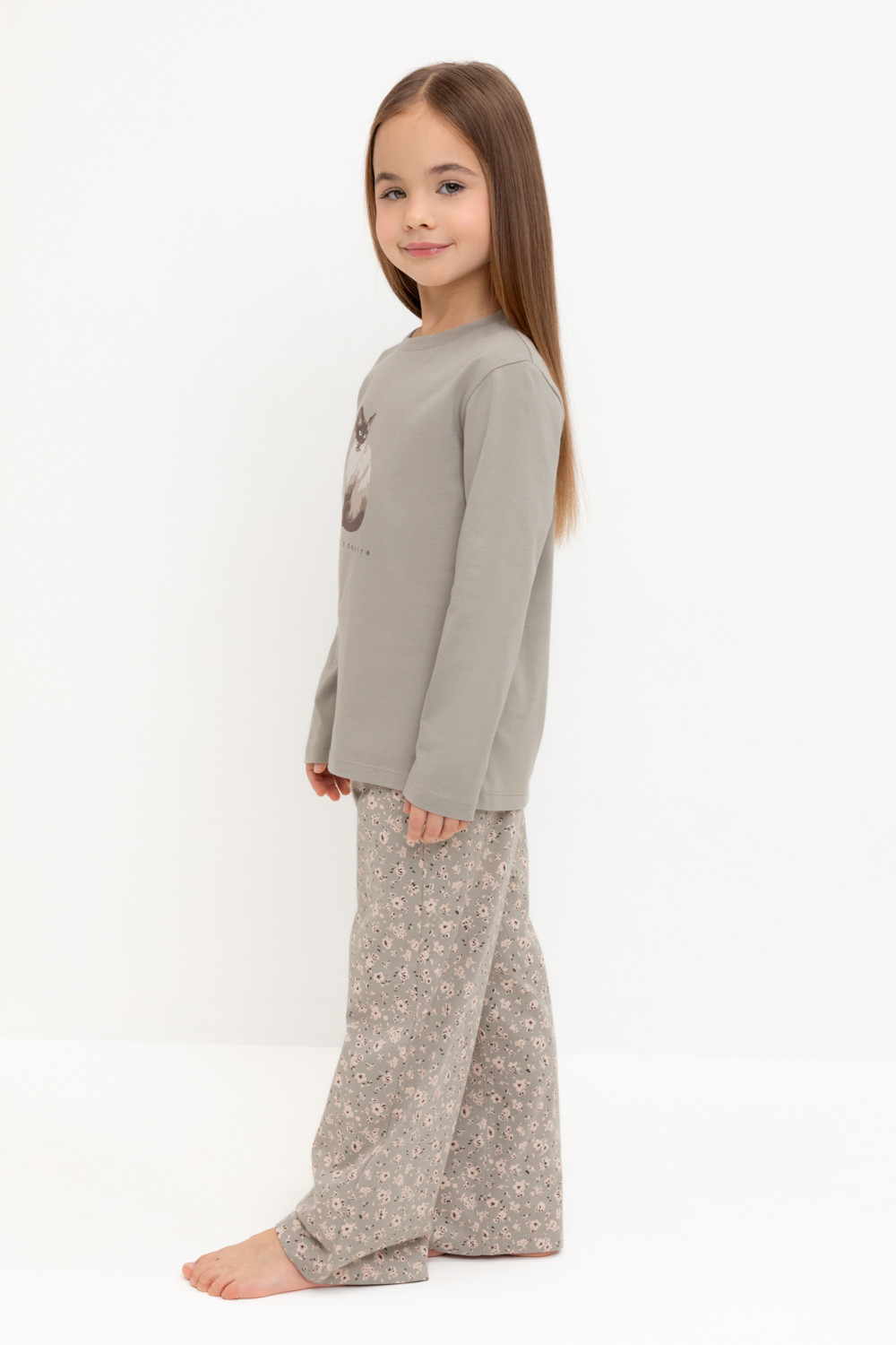 пижама для девочки К 1623/пыльно-оливковый,полевые цветы