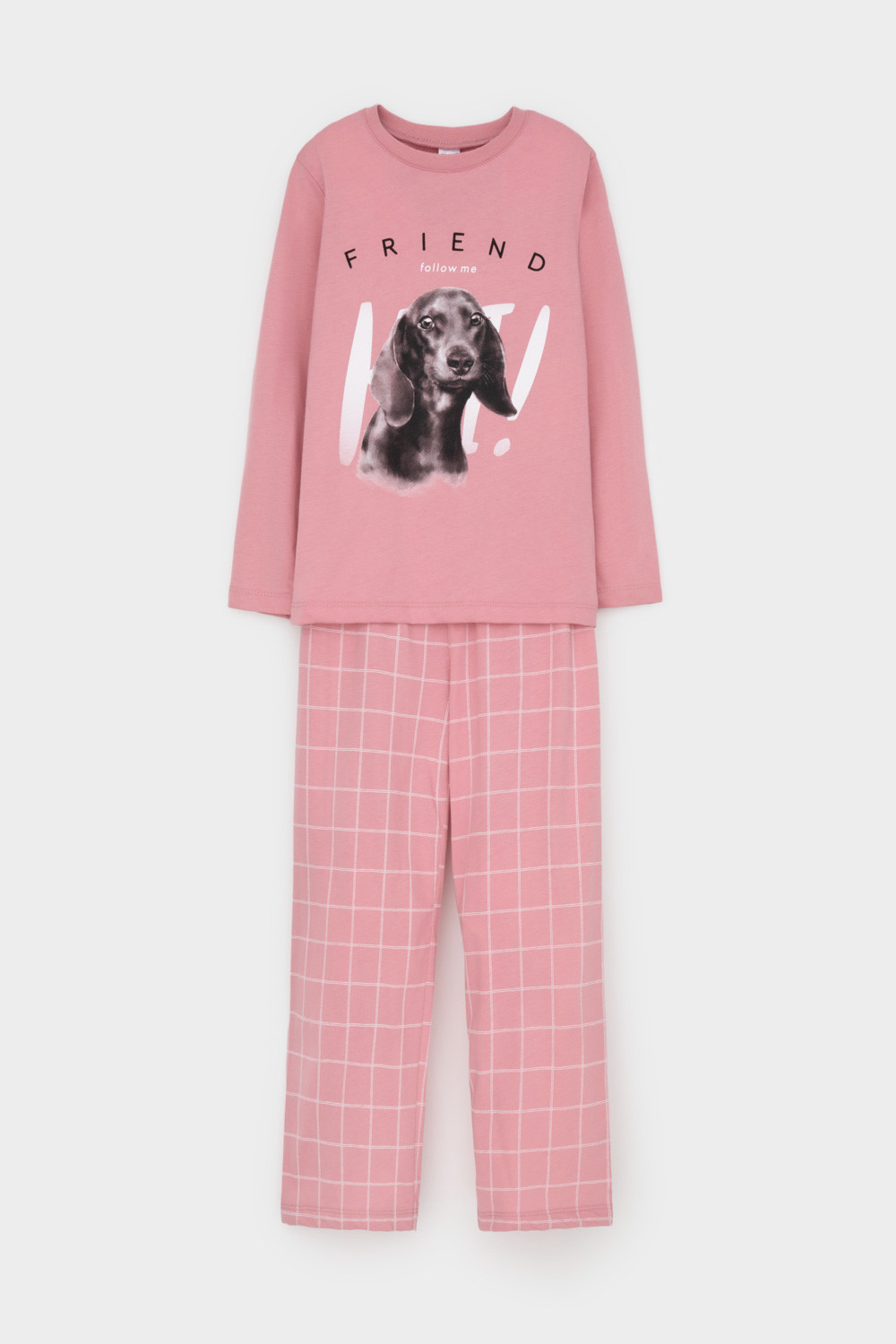 пижама для девочки К 1623/розовый зефир,двойная клетка