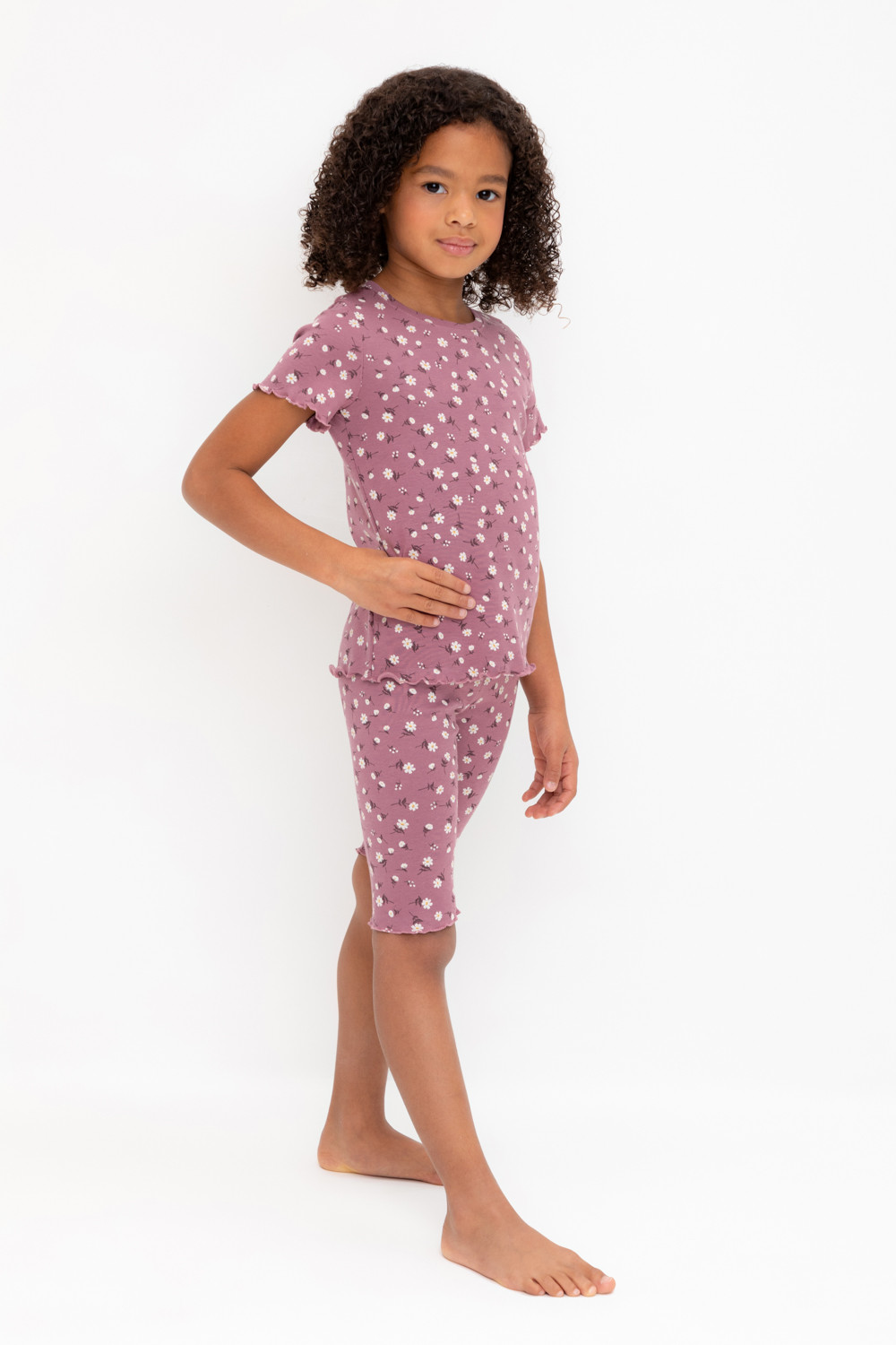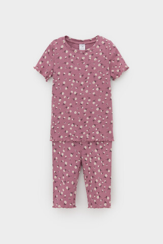 Трикотажная пижама в рубчик из натурального хлопка. Футболка с короткими втачными рукавами и шорты с эластичной резинкой в поясе. Оригинальная набивка выполнена из стойких текстильных гипоаллергенных красителей. Изделие сохраняет цвет и форму после многократных стирок. Все трикотажные полотна производятся в соответствии с нормами швейцарского сертификата ЭкоТекс.
