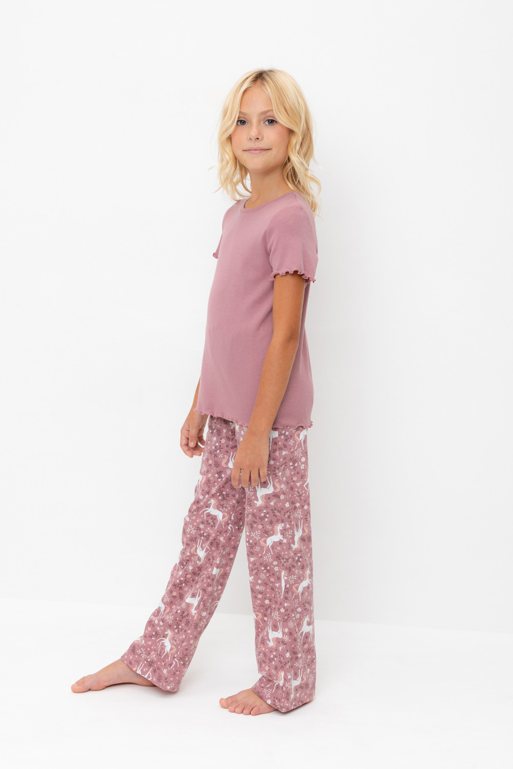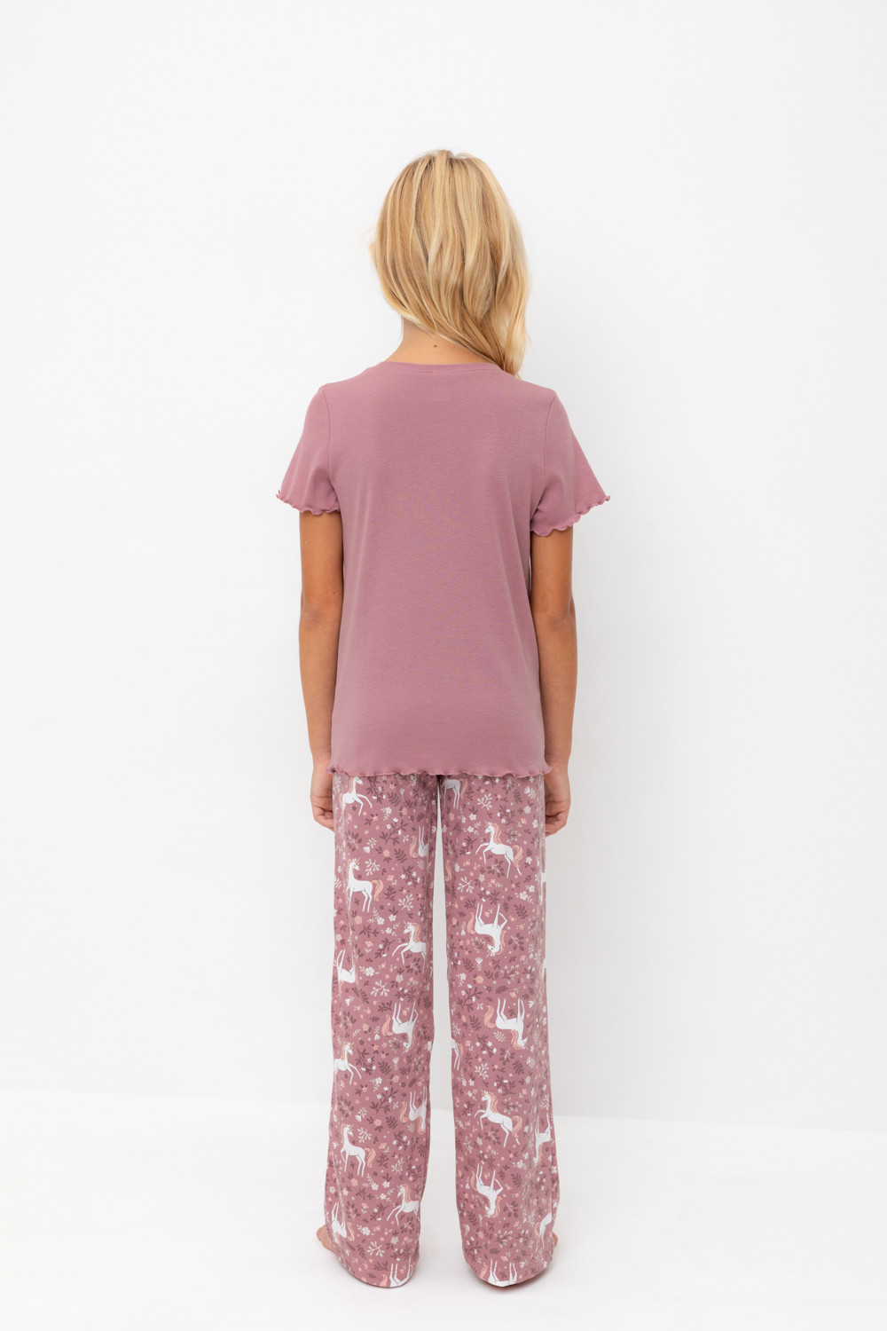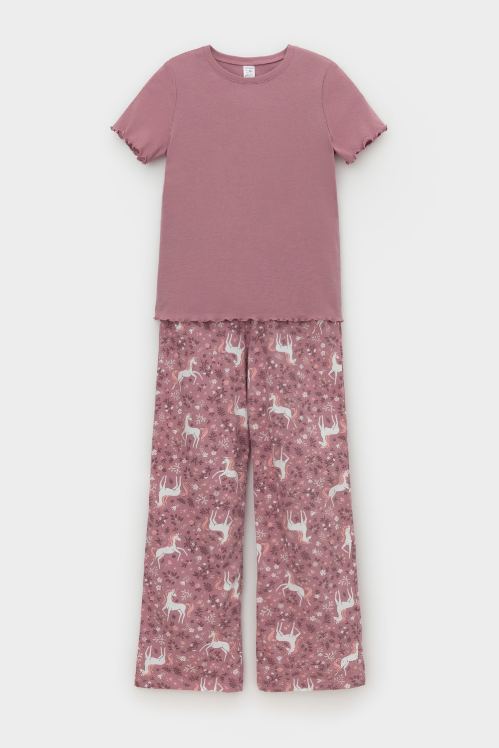 Трикотажная пижама из натурального хлопка. Футболка с короткими втачными рукавами. У футболки рукава и низ изделия обработаны микрооверлоком У брюк в комплекте мягкий, эластичный пояс на резинке. Оригинальная набивка выполнена из стойких, гипоаллергенных текстильных красителей. Комплект сохраняет цвет и форму после многократных стирок. Все трикотажные полотна производятся в соответсвии с нормами Швейцарского сертификата ЭкоТекс.