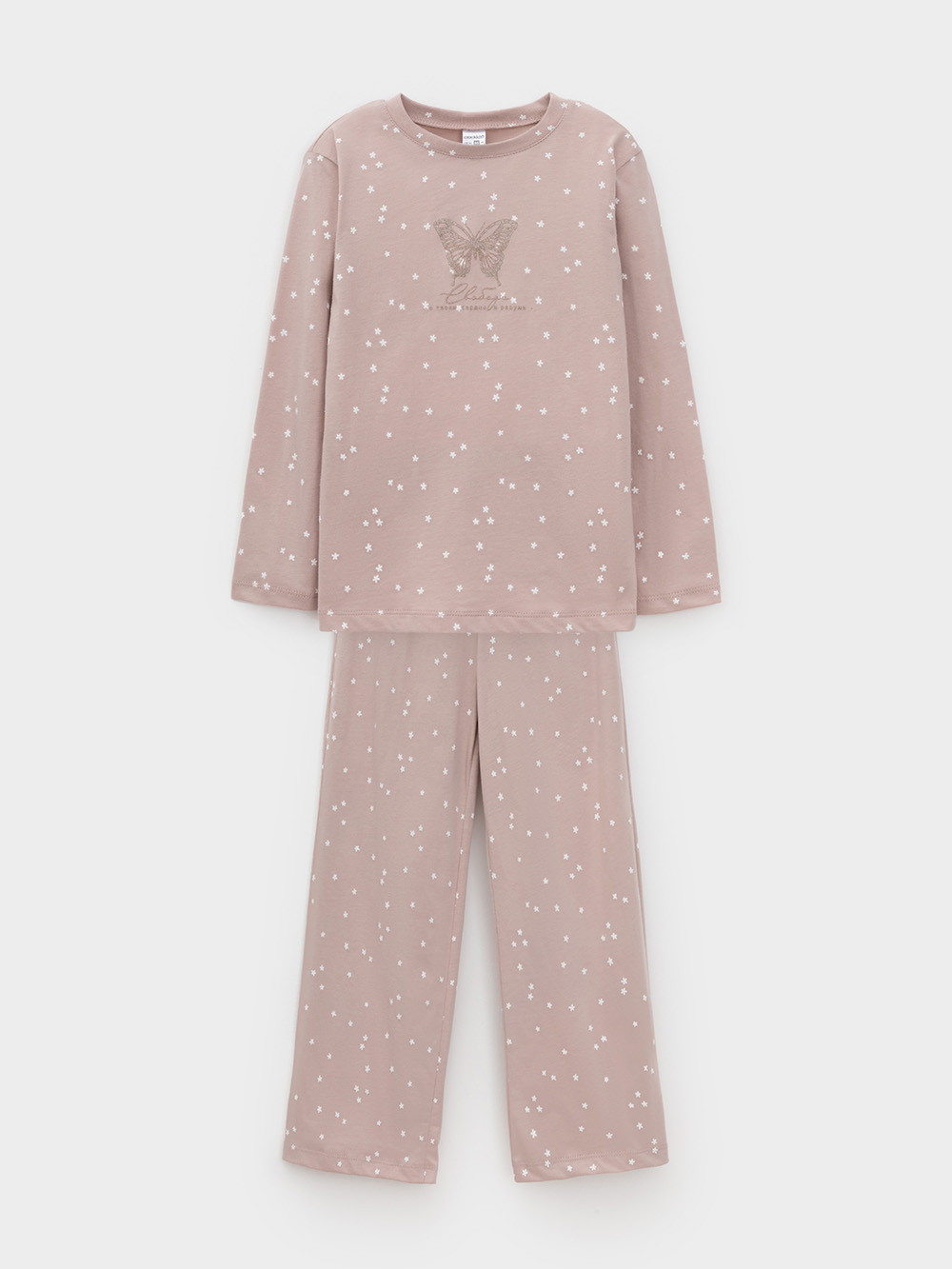 пижама для девочки К 1639/кофейный,цветочные снежинки