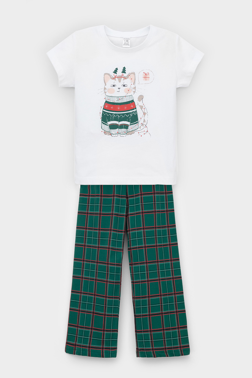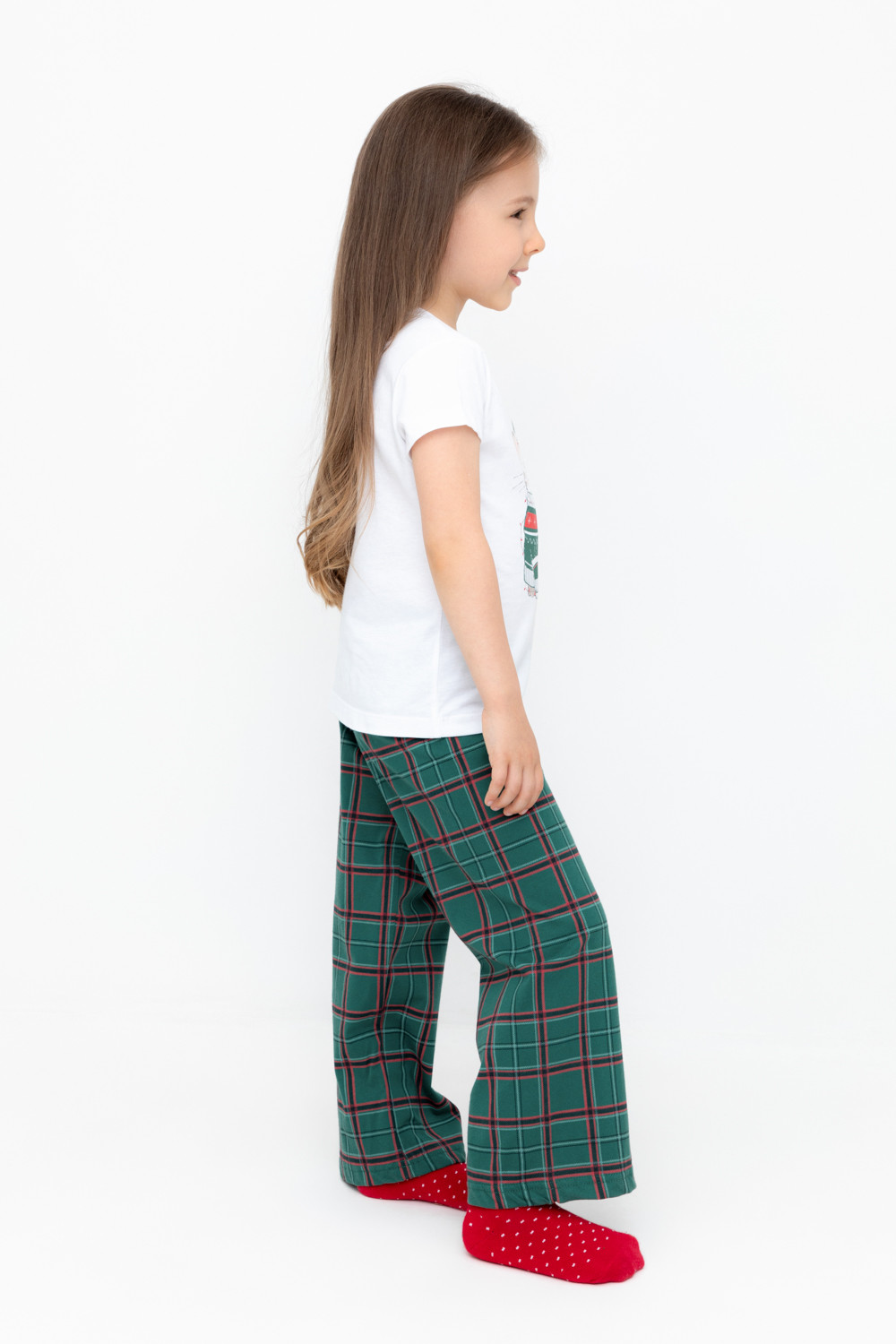 пижама для девочки К 1640/белая лилия,шотландская клетка