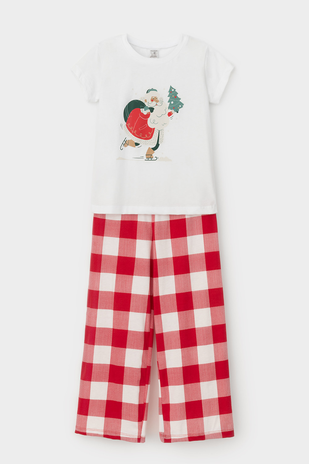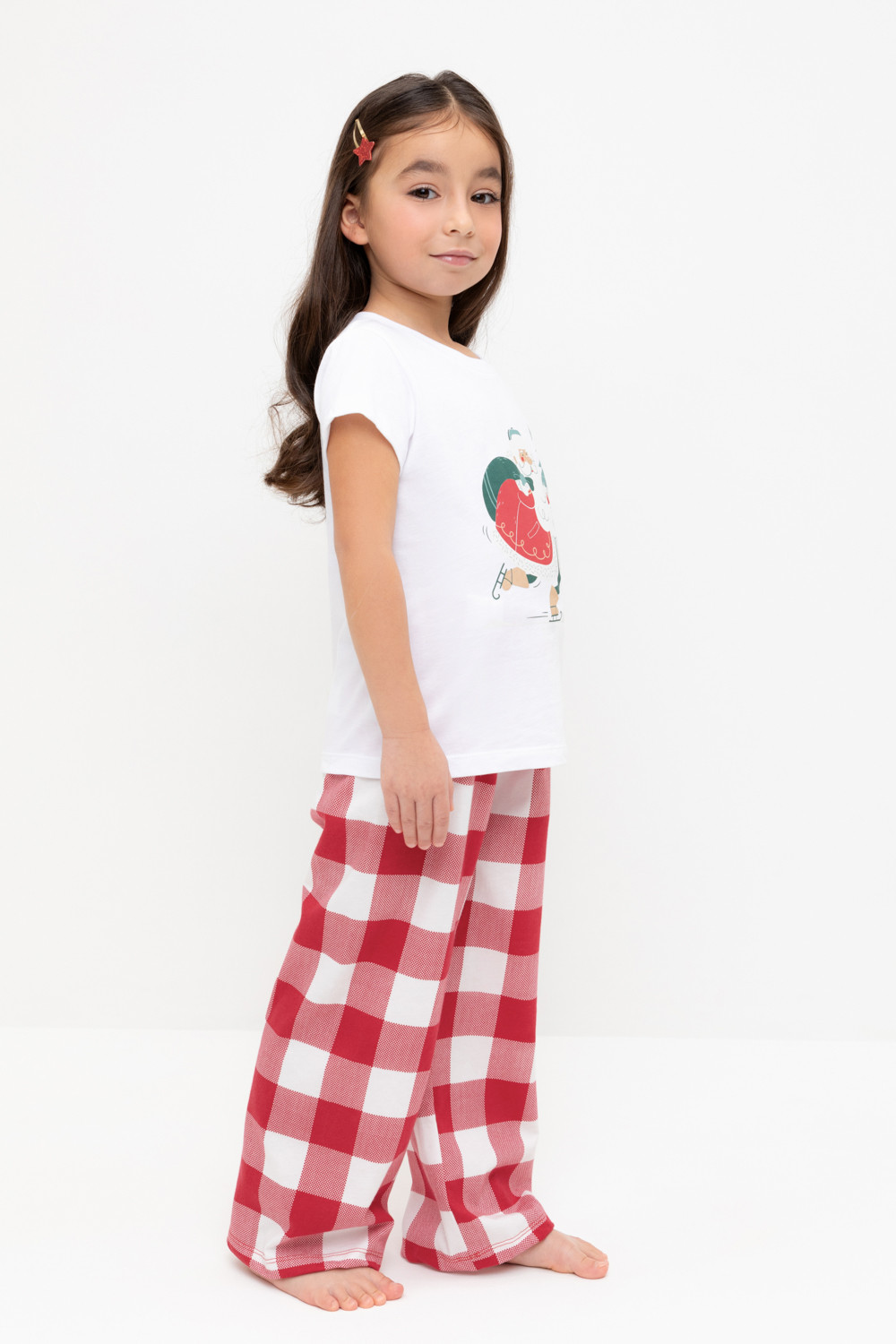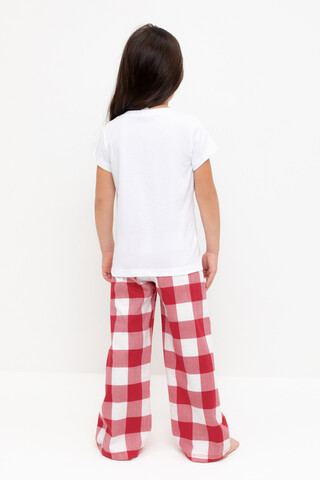 Трикотажная пижама из натурального хлопка. Футболка с принтом и короткими втачными рукавами. У брюк в комплекте мягкий, эластичный пояс на резинке. Оригинальная набивка выполнена из стойких, гипоаллергенных текстильных красителей. Комплект сохраняет цвет и форму после многократных стирок. Все трикотажные полотна производятся в соответсвии с нормами Швейцарского сертификата ЭкоТекс.