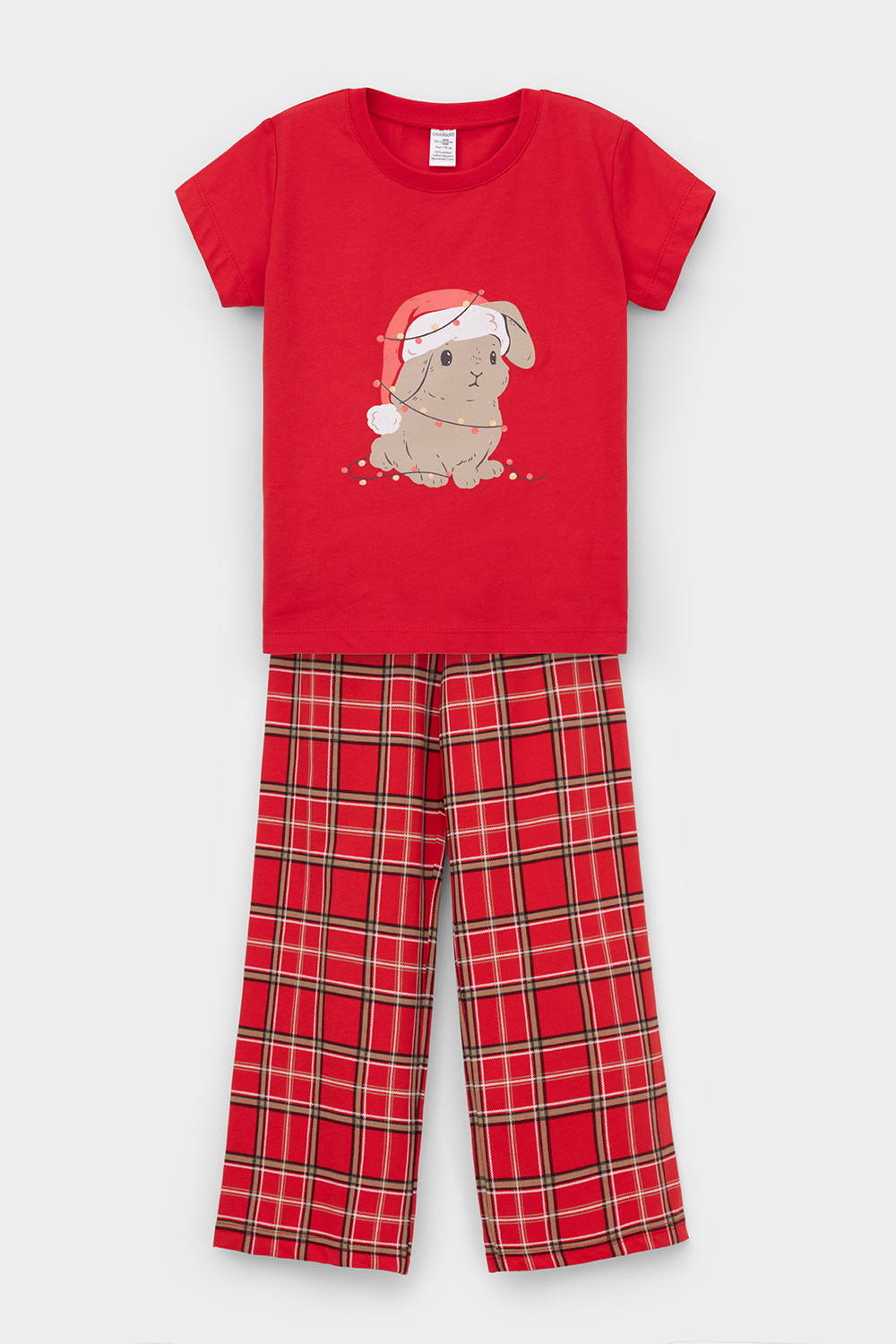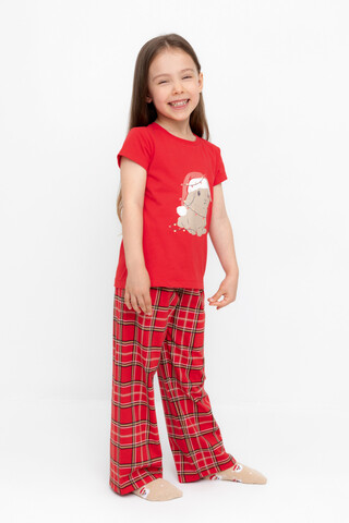 Трикотажная пижама из натурального хлопка. Футболка с принтом и короткими втачными рукавами. У брюк в комплекте мягкий, эластичный пояс на резинке. Оригинальная набивка выполнена из стойких, гипоаллергенных текстильных красителей. Комплект сохраняет цвет и форму после многократных стирок. Все трикотажные полотна производятся в соответсвии с нормами Швейцарского сертификата ЭкоТекс.