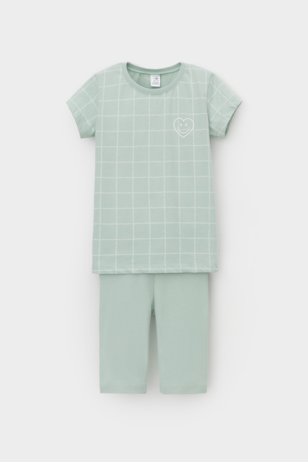 пижама для девочки К 1641/голубая дымка,двойная клетка