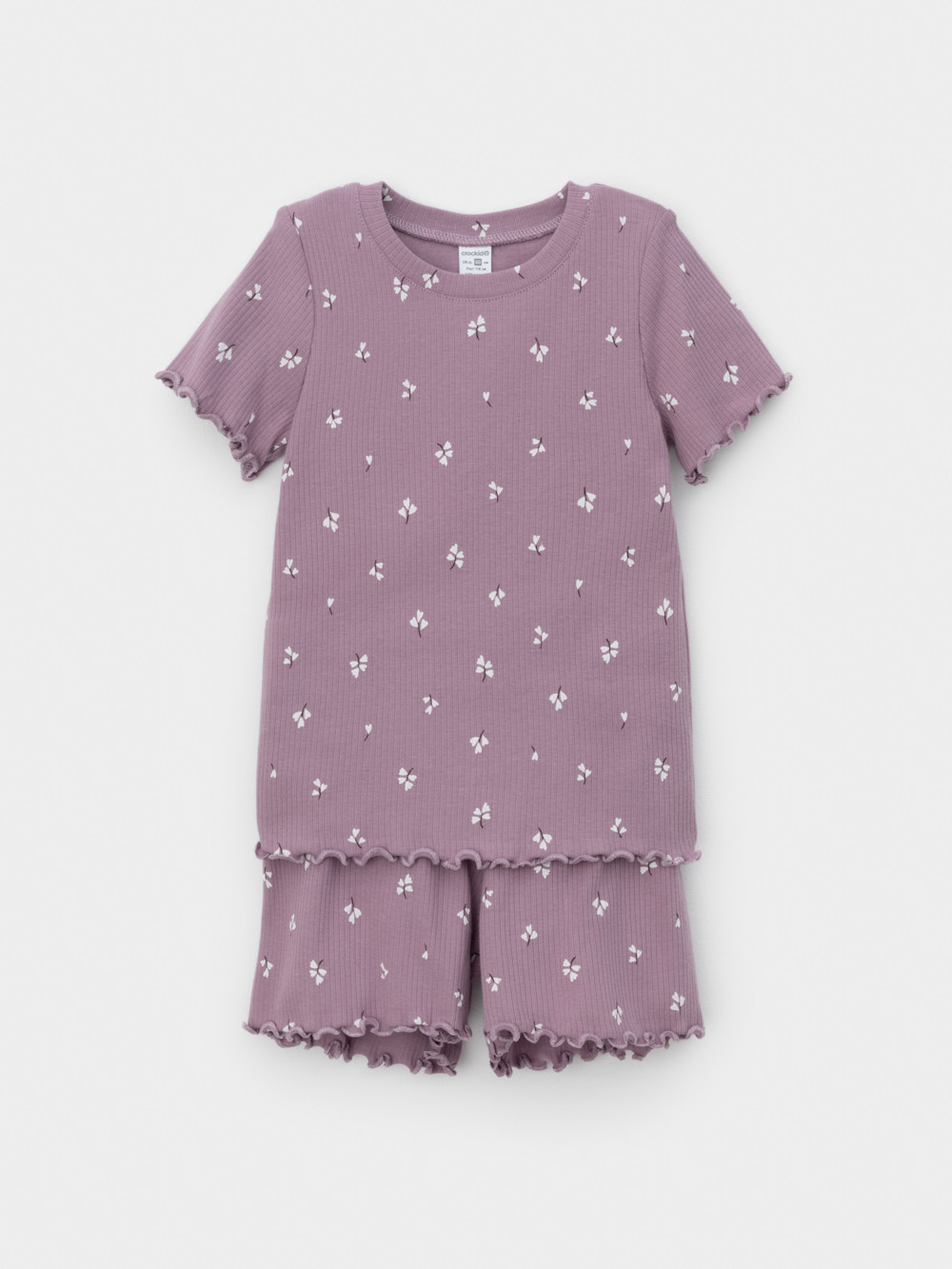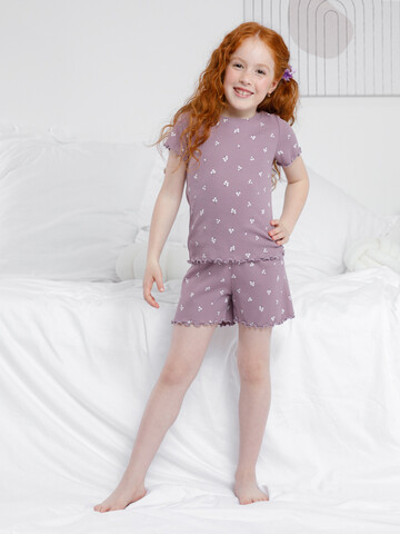 Трикотажная пижама в рубчик из натурального хлопка. Футболка с короткими втачными рукавами и шорты с эластичной резинкой в поясе. Оригинальная набивка выполнена из стойких текстильных гипоаллергенных красителей. Изделие сохраняет цвет и форму после многократных стирок. Все трикотажные полотна производятся в соответствии с нормами швейцарского сертификата ЭкоТекс.
