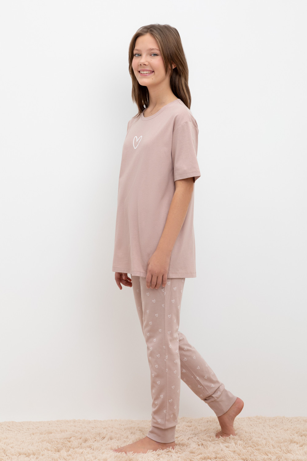 пижама для девочки КБ 2817/кофейный,воздушные сердечки