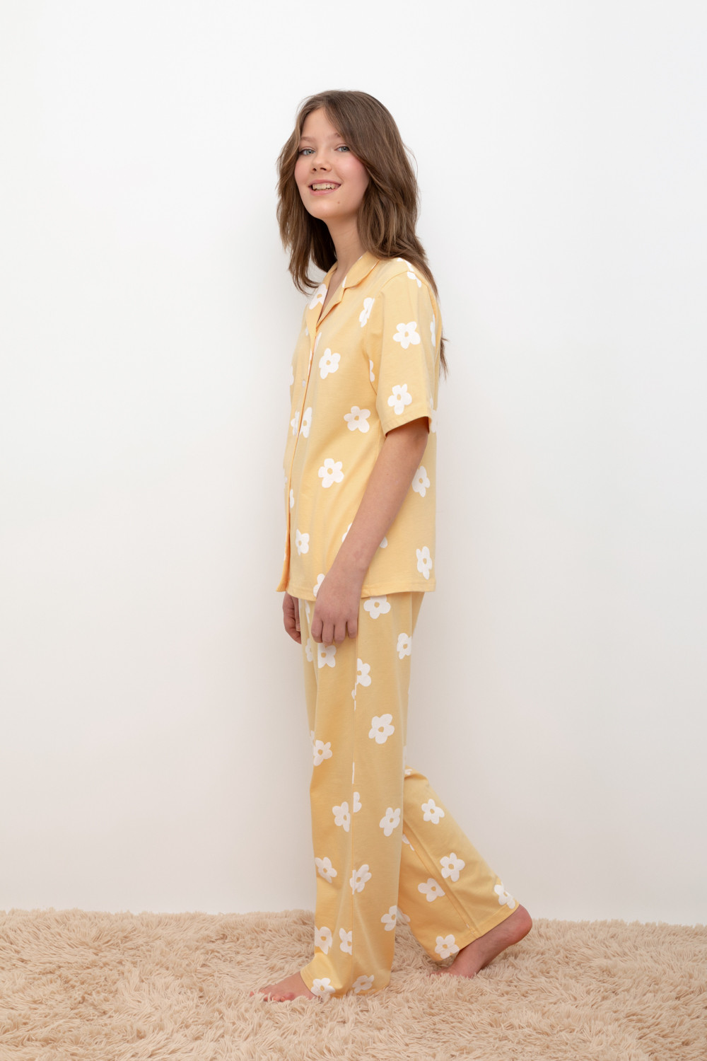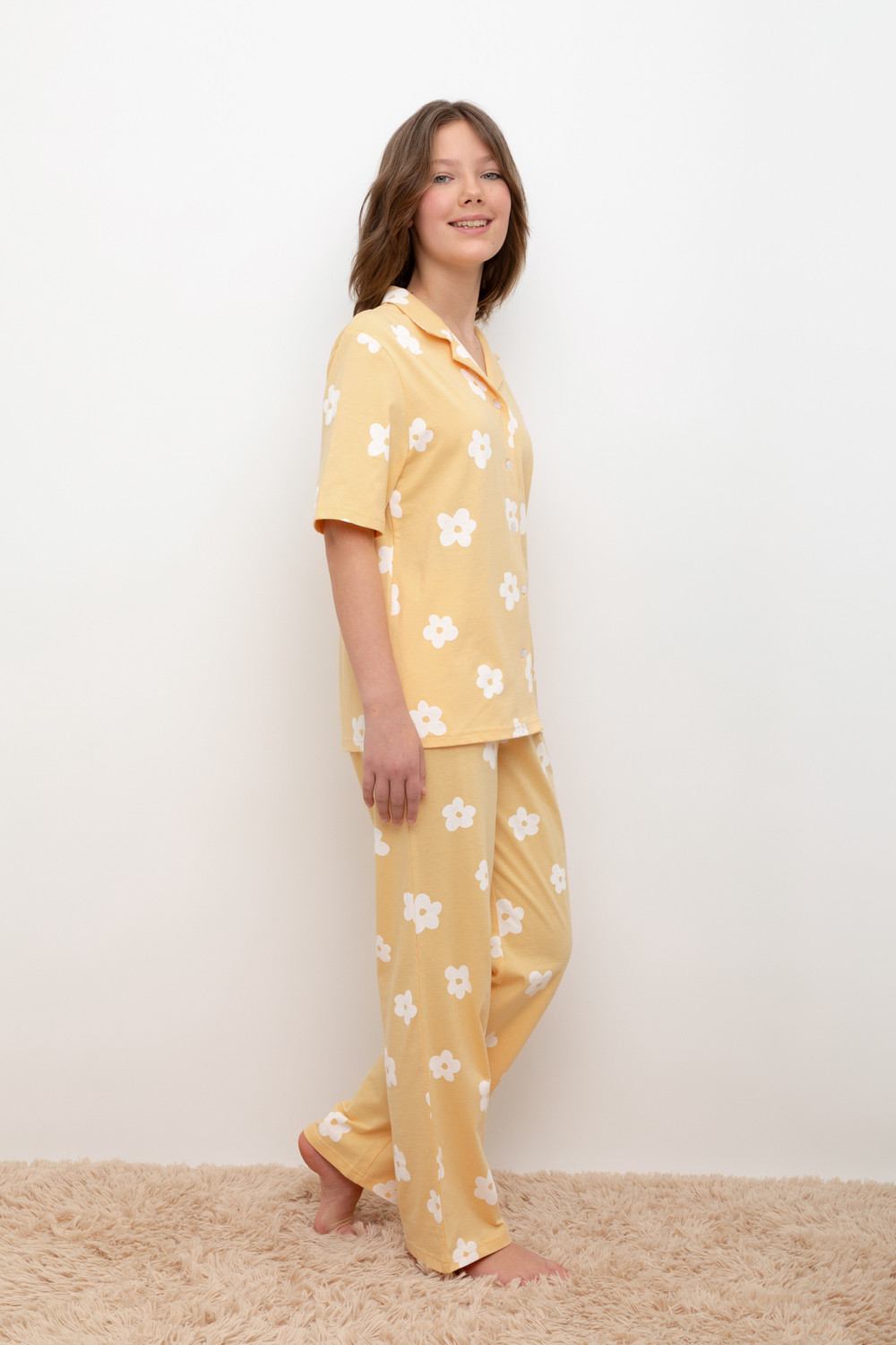 Трикотажный пижамный комплект из натурального хлопка. В комплекте рубашка с короткими рукавами и застежкой на пуговицы. Прямые брюки с удобным поясом на резинке. Оригинальная набивка выполнена из стойких, гипоаллергенных текстильных красителей. Все трикотажные полотна производятся в соответствии с нормами Швейцарского сертификата ЭкоТекс.