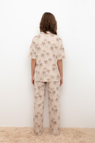 Трикотажный пижамный комплект из натурального хлопка. В комплекте рубашка с короткими рукавами и застежкой на пуговицы. Прямые брюки с удобным поясом на резинке. Оригинальная набивка выполнена из стойких, гипоаллергенных текстильных красителей. Все трикотажные полотна производятся в соответствии с нормами Швейцарского сертификата ЭкоТекс.
