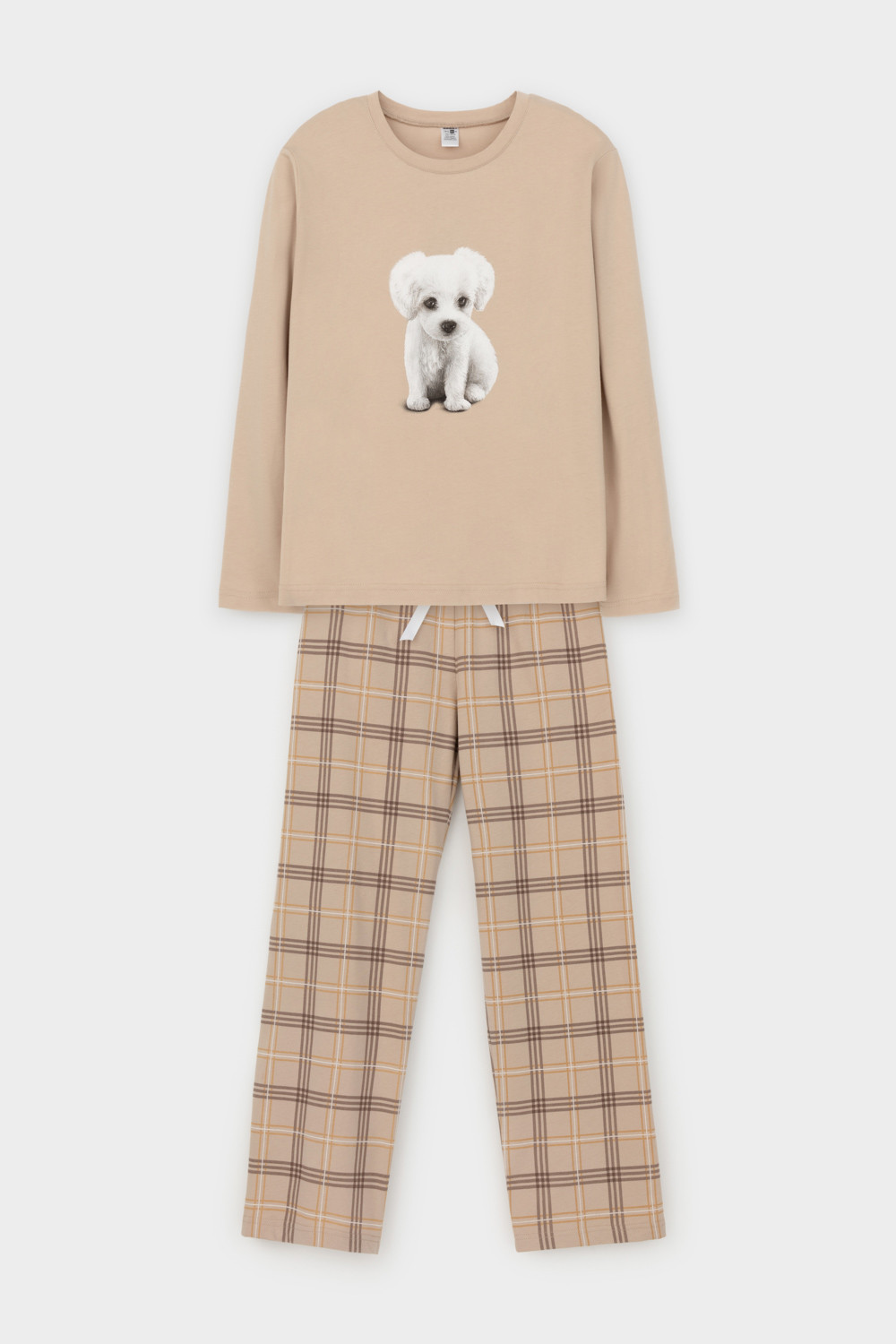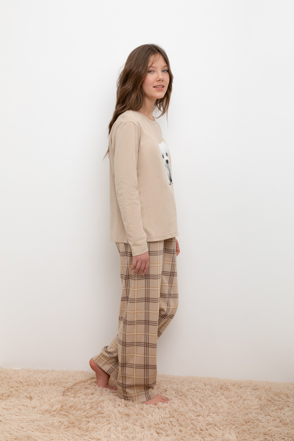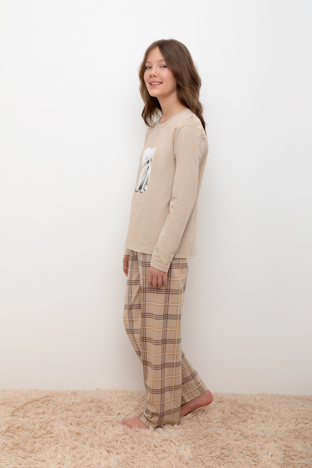 пижама для девочки КБ 2830/темно-бежевый,текстильная клетка
