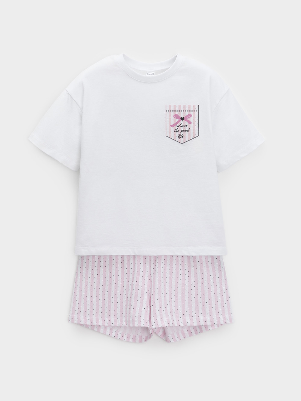 Трикотажная пижама из натурального хлопка для комфортного сна и отдыха. Свободная футболка с короткими спущенными рукавами и шорты с мягкой эластичной резинкой в поясе. Оригинальный рисунок выполнен из стойких текстильных гипоаллергенных красителей. Изделие сохраняет цвет и форму после многократных стирок. Все трикотажные полотна производятся в соответствии с нормами швейцарского сертификата ЭкоТекс.
