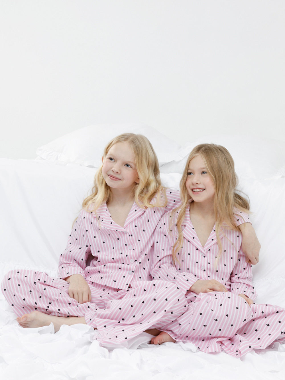 Трикотажная пижама из натурального хлопка для комфортного сна и отдыха. Рубашка на пуговицах с длинными рукавами и широкие брюки с мягкой эластичной резинкой в поясе. Набивной рисунок выполнен из стойких текстильных гипоаллергенных красителей. Изделие сохраняет цвет и форму после многократных стирок. Все трикотажные полотна производятся в соответствии с нормами швейцарского сертификата ЭкоТекс.