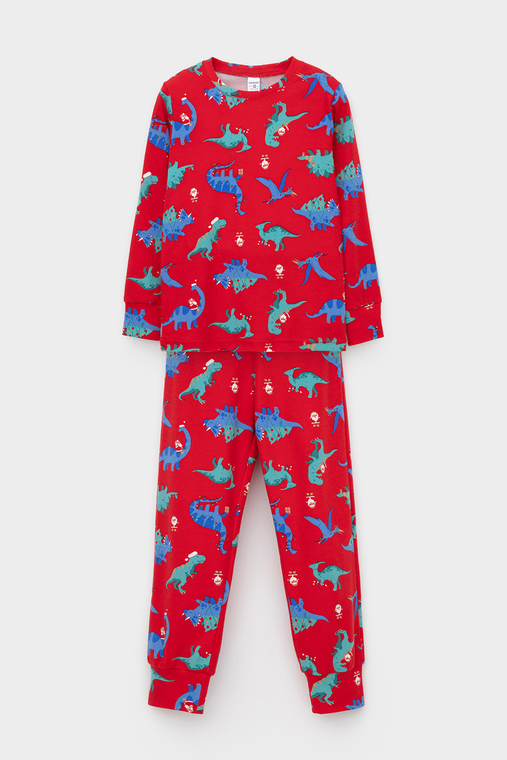 пижама для мальчика К 1552/насыщенно-красный,динозавры