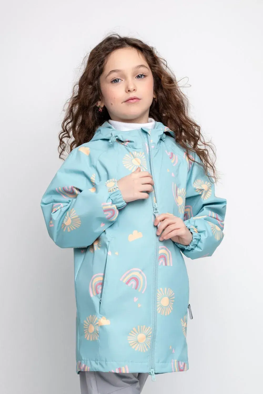 Плащ для девочки из мембранной ткани с дополнительной тефлоновой обработкой. Данный вид обработки предохраняет изделие от загрязнения и лучше отводит влагу. Подклад из сетки из 100% полиэстера. У изделия предусмотрена защита подбородка. Несъемный капюшон регулируется с помощью эластичного шнура со стопперами. Низ рукавов изделия имеет эластичную резинку для лучшего прилегания. В боковых швах карманы на молнии. Во всех изделиях верхнего ассортимента для безопасности ребенка предусмотрены светоотражающие элементы.