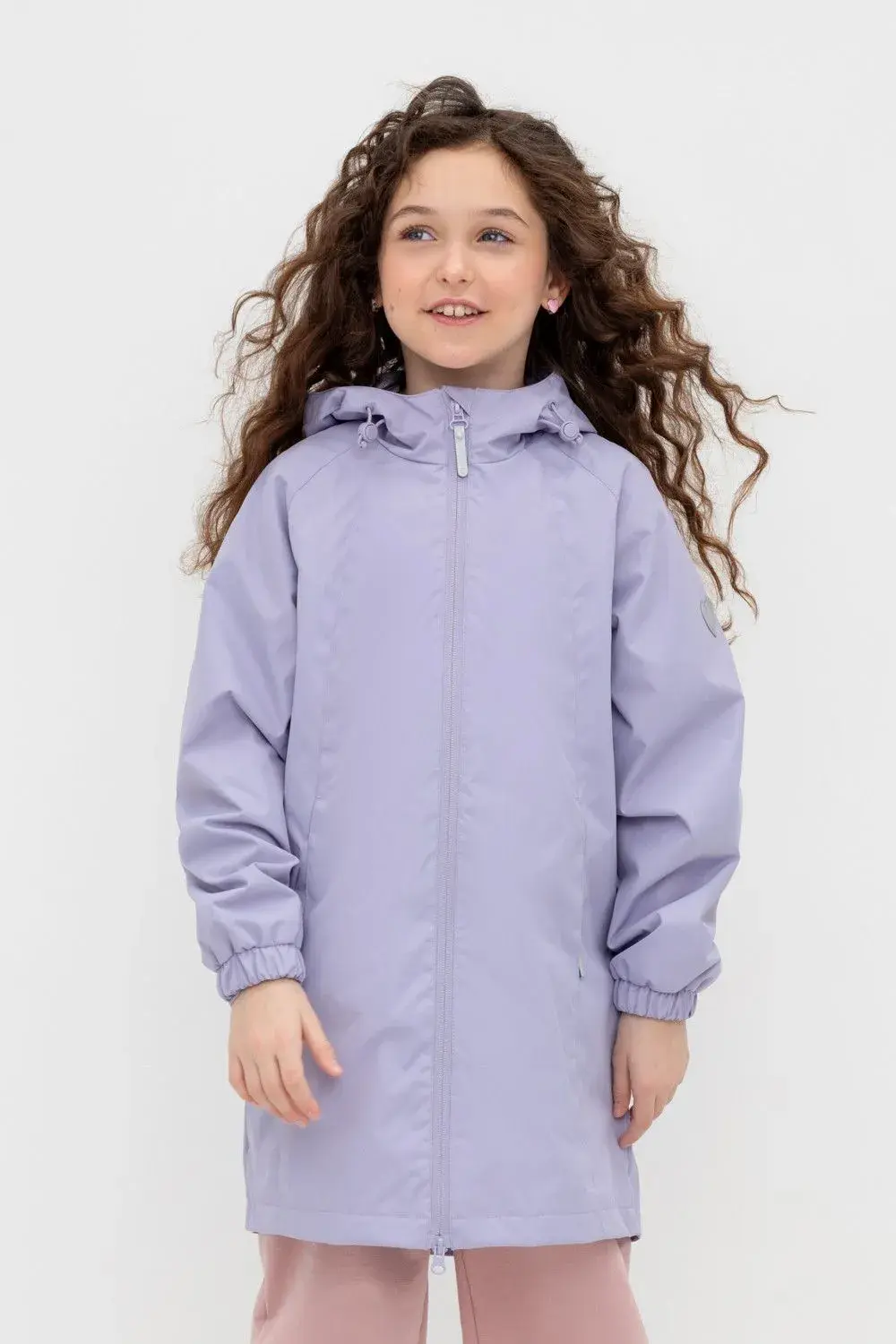 Плащ для девочки из мембранной ткани с дополнительной тефлоновой обработкой. Данный вид обработки предохраняет изделие от загрязнения и лучше отводит влагу. Подклад из сетки из 100% полиэстера. У изделия предусмотрена защита подбородка. Несъемный капюшон регулируется с помощью эластичного шнура со стопперами. Низ рукавов изделия имеет эластичную резинку для лучшего прилегания. В боковых швах карманы на молнии. Во всех изделиях верхнего ассортимента для безопасности ребенка предусмотрены светоотражающие элементы.