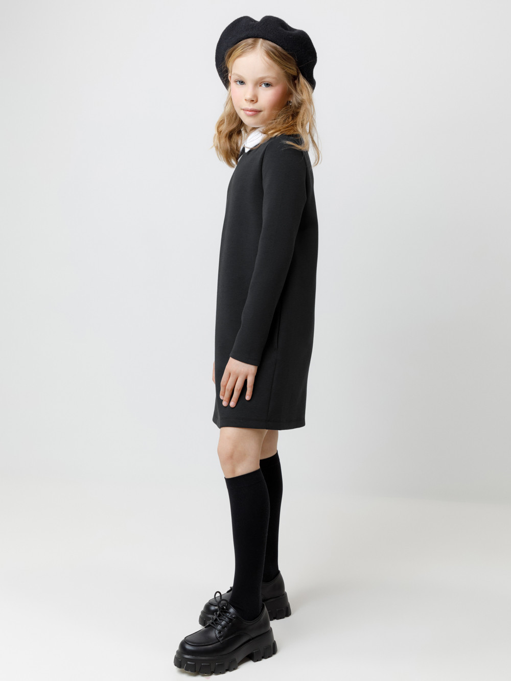Платье школьное с воротничком и длинными рукавами для девочки. Изготовлено из высококачественного трикотажа интерлок DOUBLE FACE. Застёгивается на пуговицу на спинке. Идеальный и комфортный вариант на каждый день.