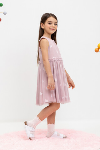платье для девочки КР 5734/розово-сиреневый,сердечки к449