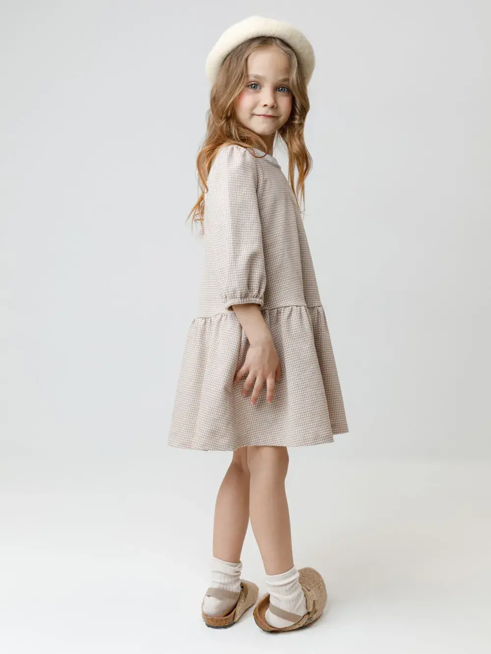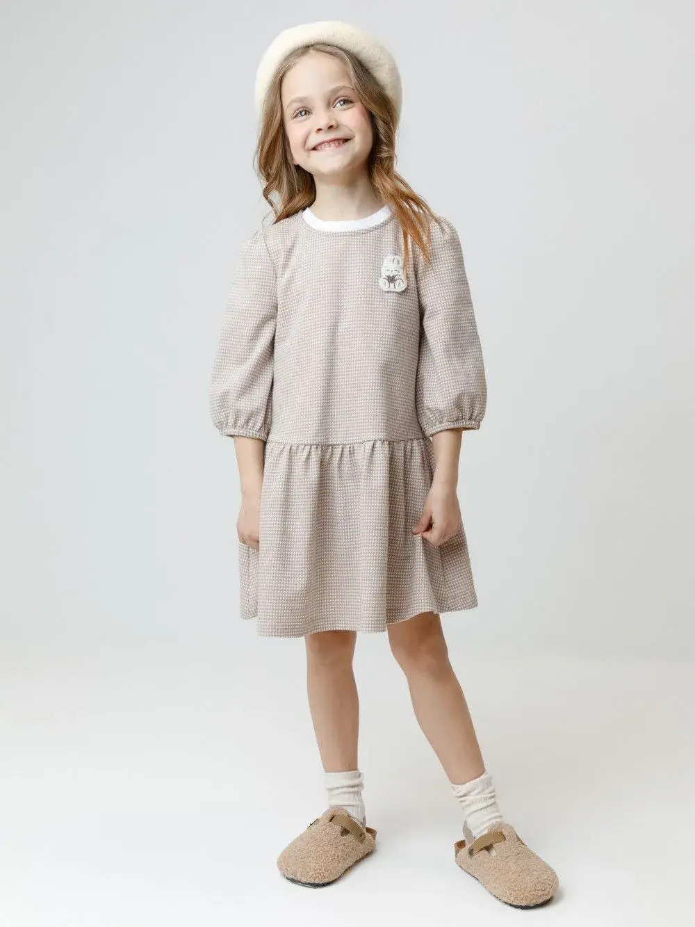 платье для девочки КР 5827/бежевый,гусиная лапка к625