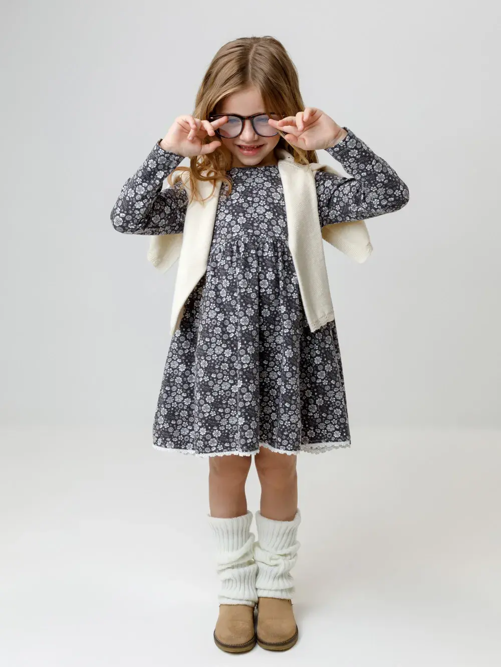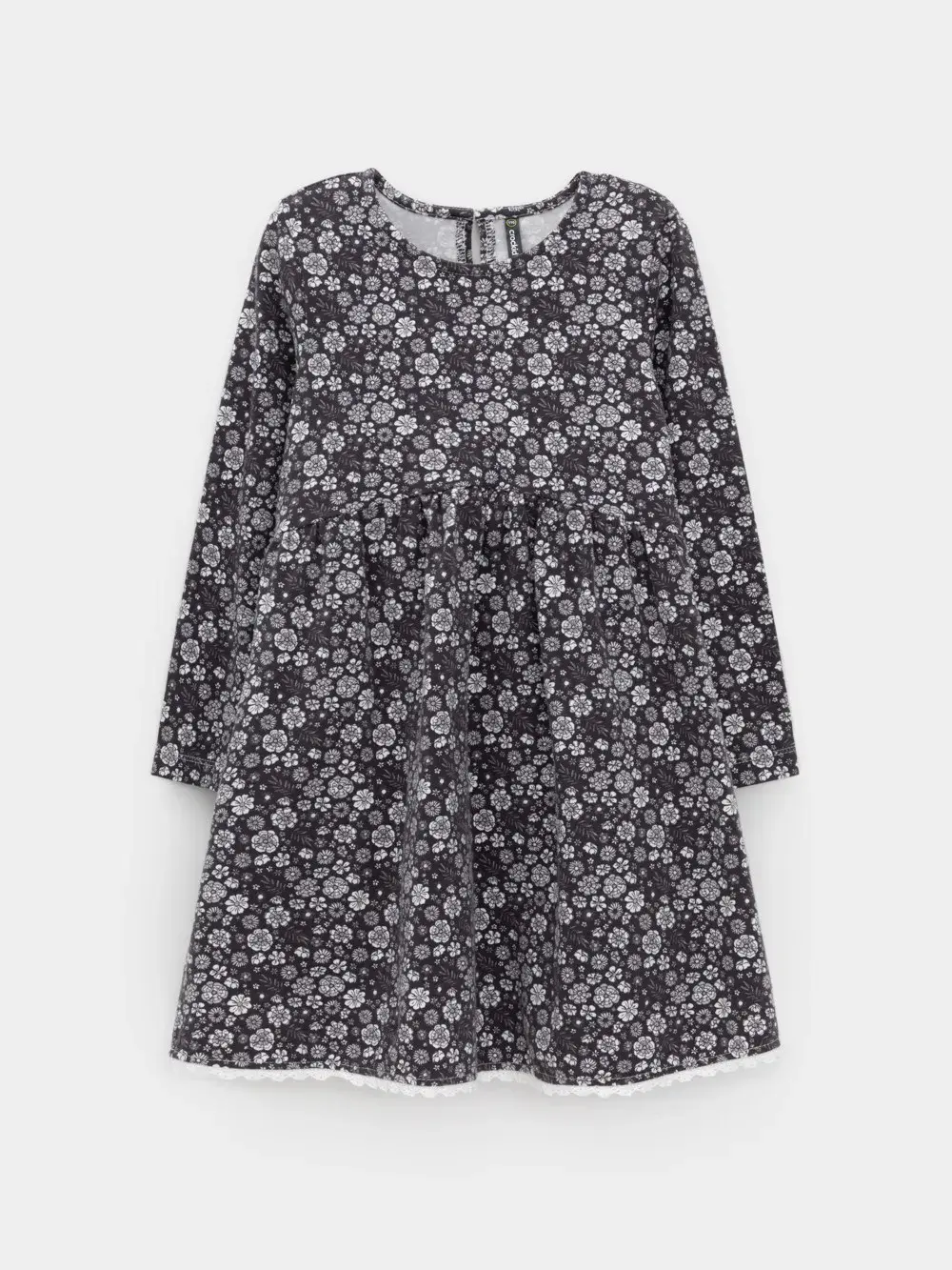 Платье для девочки с длинными рукавами из высококачественного гладкого трикотажа. Для удобства одевания на спинке платье застёгивается на пуговицу. Украшено кружевом. Платье сохраняет форму и стойкий цвет после многочисленных стирок и идеально подходит на каждый день. Все трикотажные полотна производятся в соответствии с нормами швейцарского сертификата ЭкоТекс.