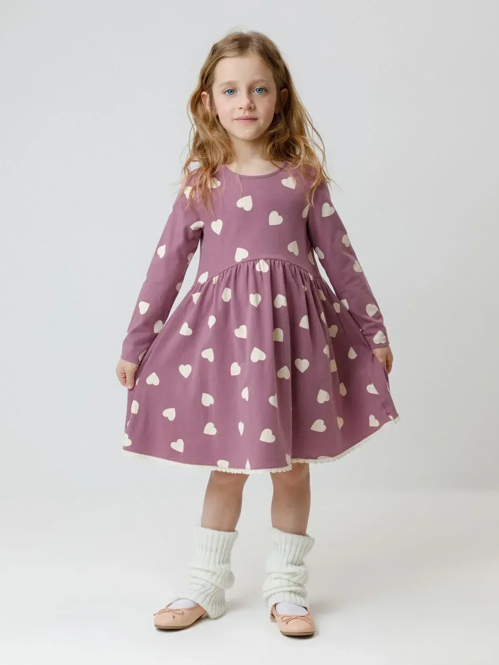 платье для девочки КР 5836/темная орхидея,сердечки к591