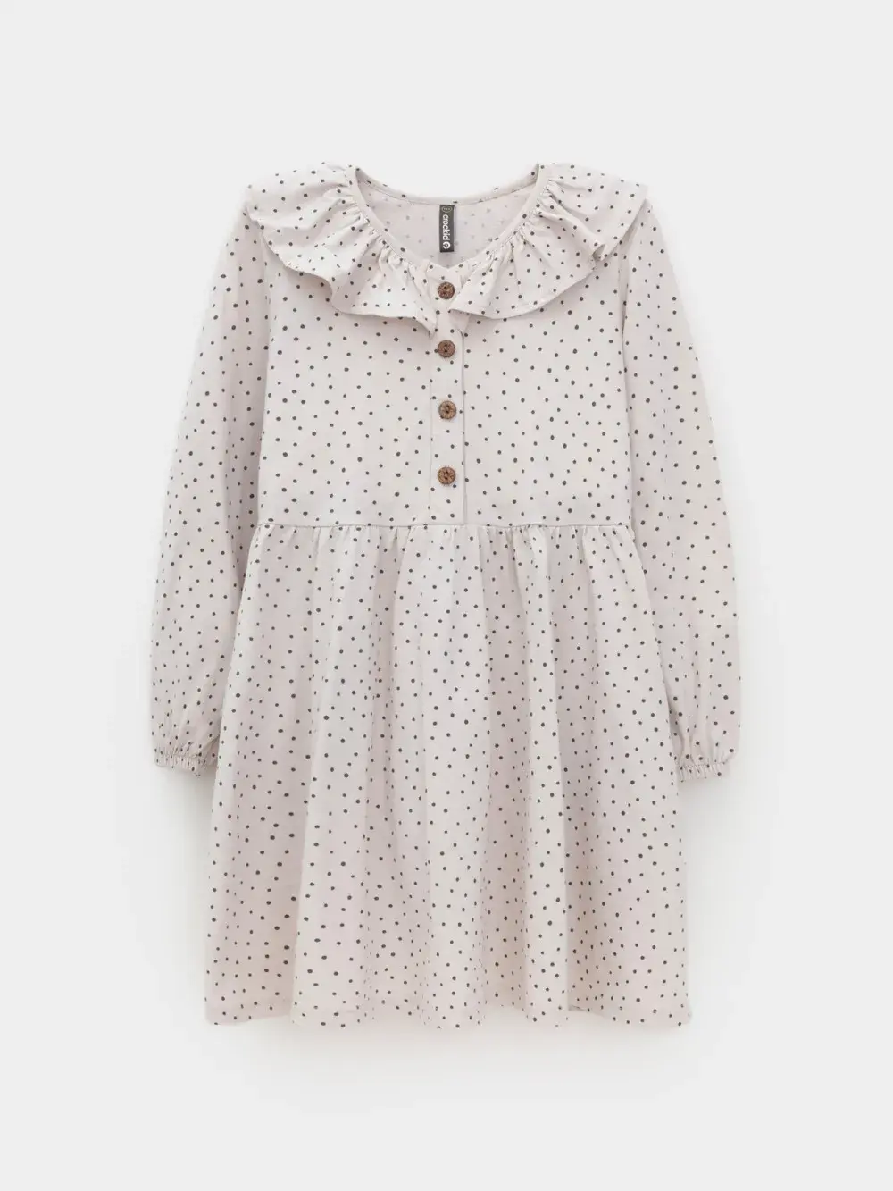 Платье для девочки с длинными рукавами из гладкого хлопкового трикотажа. Для удобства одевания спереди застёгивается на пуговицы. Платье сохраняет форму и стойкий цвет после многочисленных стирок и идеально подходит на каждый день. Все трикотажные полотна производятся в соответствии с нормами швейцарского сертификата ЭкоТекс.