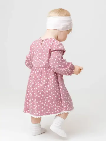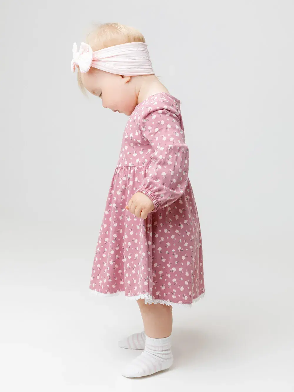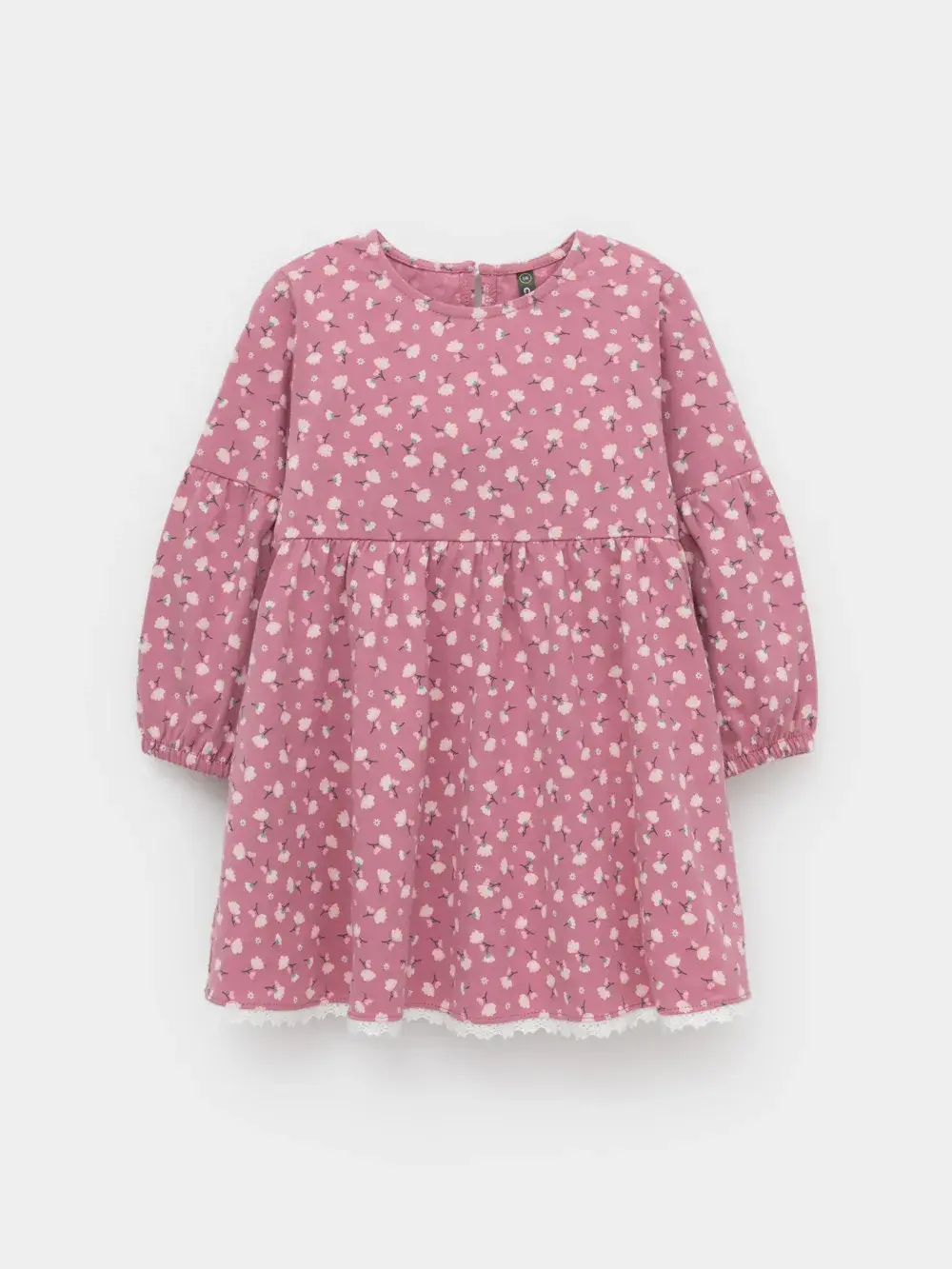 Платье для девочки с длинными рукавами из высококачественного гладкого трикотажа. Для удобства одевания на спинке платье застёгивается на пуговицу. Украшено кружевом. Платье сохраняет форму и стойкий цвет после многочисленных стирок и идеально подходит на каждый день. Все трикотажные полотна производятся в соответствии с нормами швейцарского сертификата ЭкоТекс.