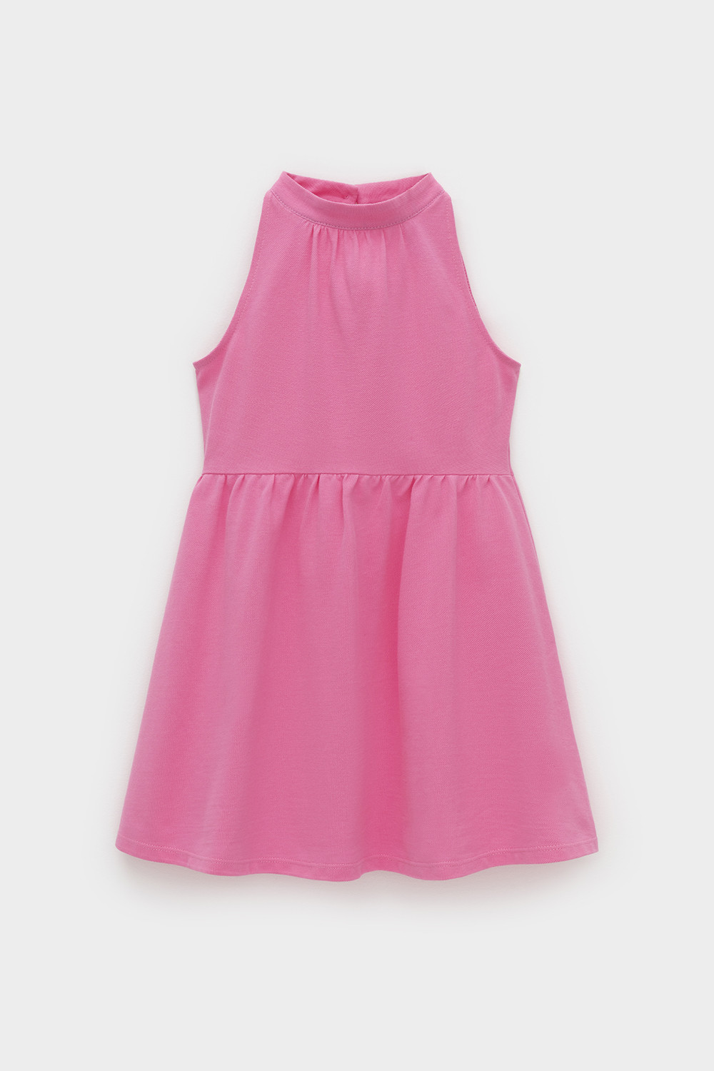 Платье для девочки из высококачественного трикотажа пике с воротничком-стойкой. Для удобства одевания платье застёгивается на пуговицу на спинке. Платье сохраняет форму и стойкий цвет после многочисленных стирок и идеально подходит на каждый день.