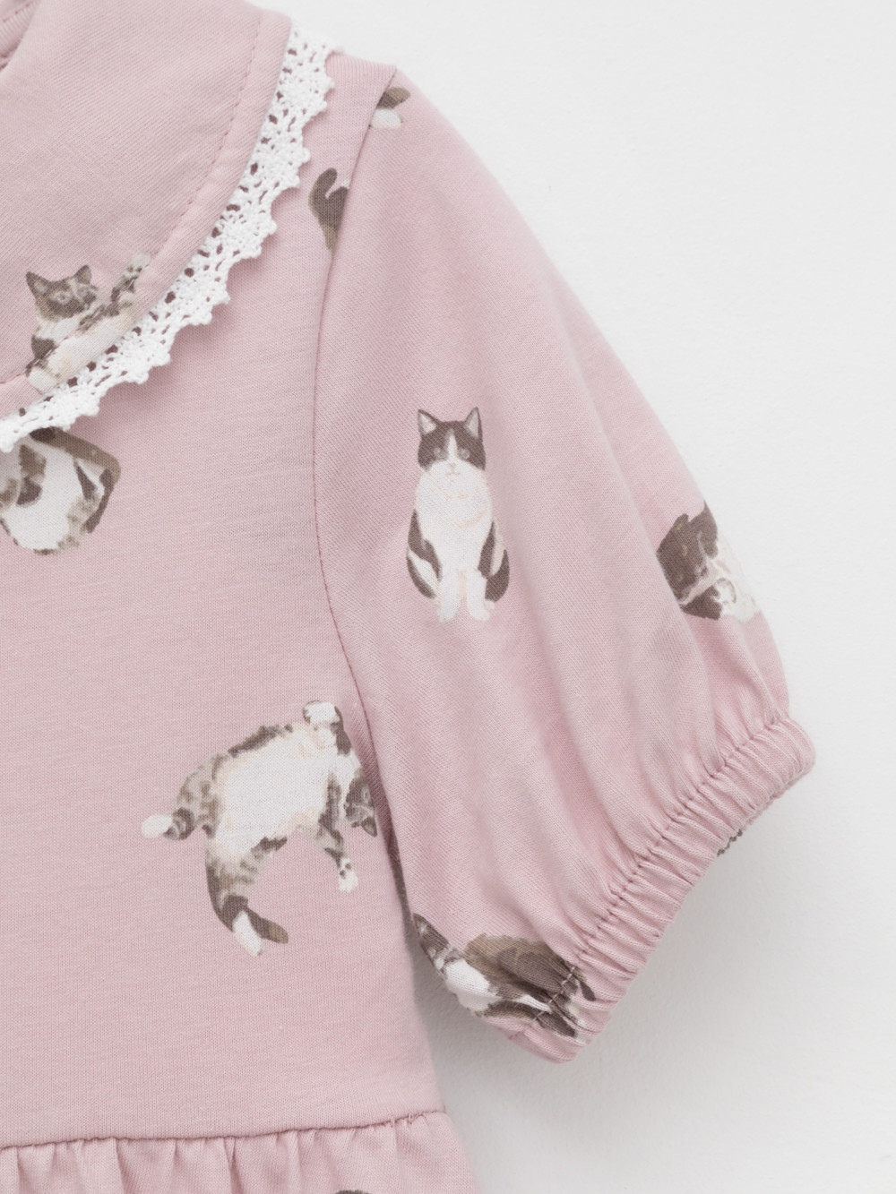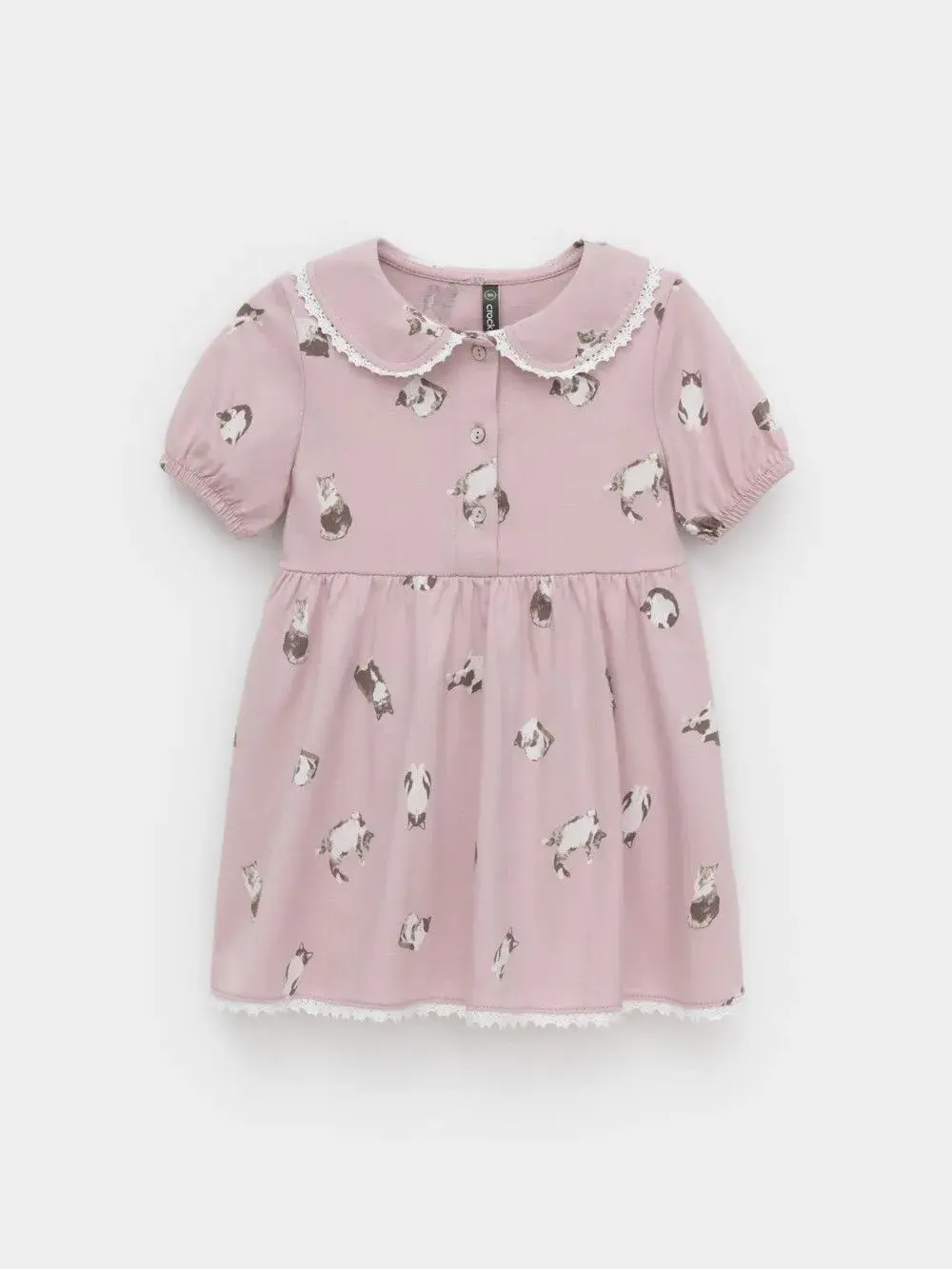 Платье для девочки с короткими рукавами из высококачественного гладкого трикотажа. Для удобства одевания платье застёгивается на пуговицы спереди. Украшено кружевом. Платье сохраняет форму и стойкий цвет после многочисленных стирок и идеально подходит на каждый день. Все трикотажные полотна производятся в соответствии с нормами швейцарского сертификата ЭкоТекс.