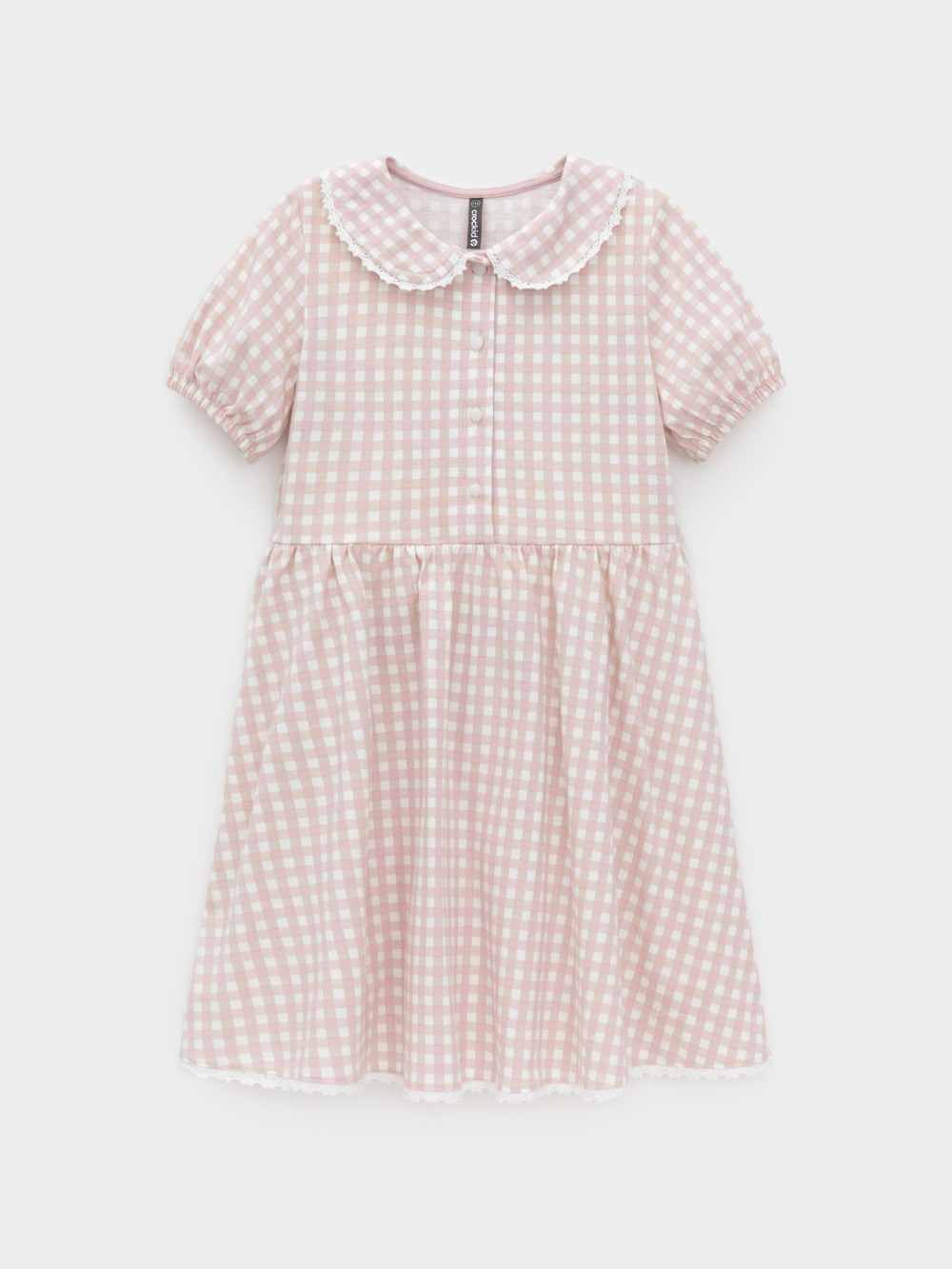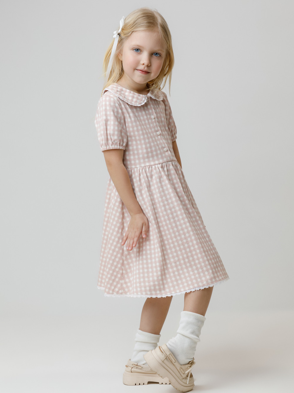 Платье для девочки КР 5932/розовый лед,маленькая клетка к601