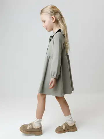 Платье для девочки с длинными рукавами из мягкого трикотажа селаник с peach эффектом. Peach эффект достигается с помощью технологии обработки полотна, при которой на его поверхности создаётся лёгкий ворс, напоминающий нежную текстуру кожи персика. Для удобства одевания спереди застёгивается на пуговицы. Платье сохраняет форму и стойкий цвет после многочисленных стирок и идеально подходит на каждый день. Все трикотажные полотна производятся в соответствии с нормами швейцарского сертификата ЭкоТекс.