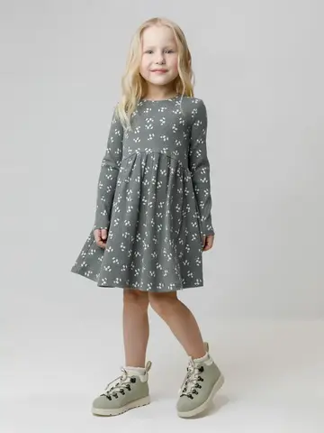 Платье для девочки КР 5942/пряный базилик,нежные цветочки к585