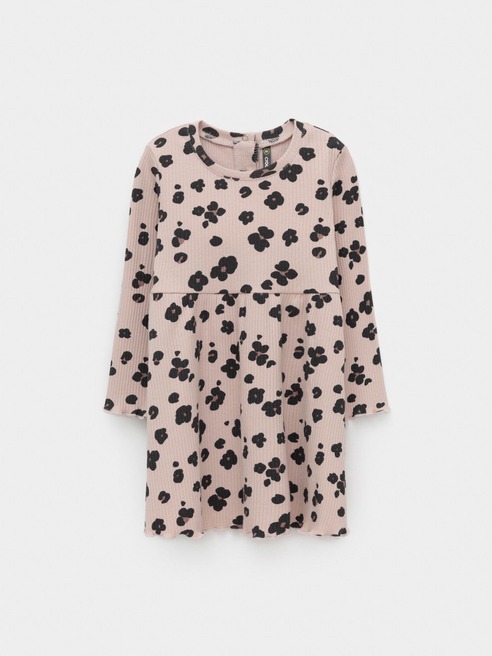 Платье для девочки из эластичного трикотажа в рубчик. Оригинальный рисунок выполнен из стойких текстильных гипоаллергенных красителей. Изделие сохраняет цвет и форму после многократных стирок. Все трикотажные полотна производятся в соответствии с нормами швейцарского сертификата ЭкоТекс.