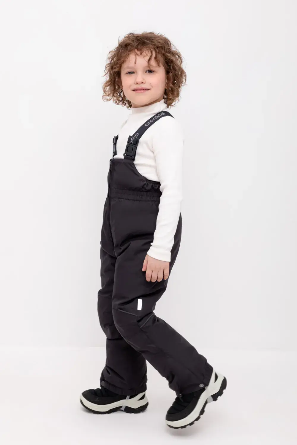 Зимний детский полукомбинезон с утеплителем 200 г/м2 из мембранной ткани с дополнительной тефлоновой обработкой, которая предохраняет изделие от загрязнений и отталкивает влагу. Подклад выполнен из мягкого полиэстера Tricot. Благодаря высокой талии и подтяжкам с регулировкой по росту брюки идеально сидят на фигуре. Застёжка на молнии облегчает одевание. Колени с анатомическим кроем усилены дополнительными вставками из основной ткани. Низ регулируется под ширину обуви при помощи кнопки. Силиконовые штрипки и внутренняя противоснежная юбка защищают обувь от попадания снега и удерживают брюки в закреплённом положении. Во всех изделиях верхнего ассортимента для безопасности ребёнка предусмотрены светоотражающие элементы.
