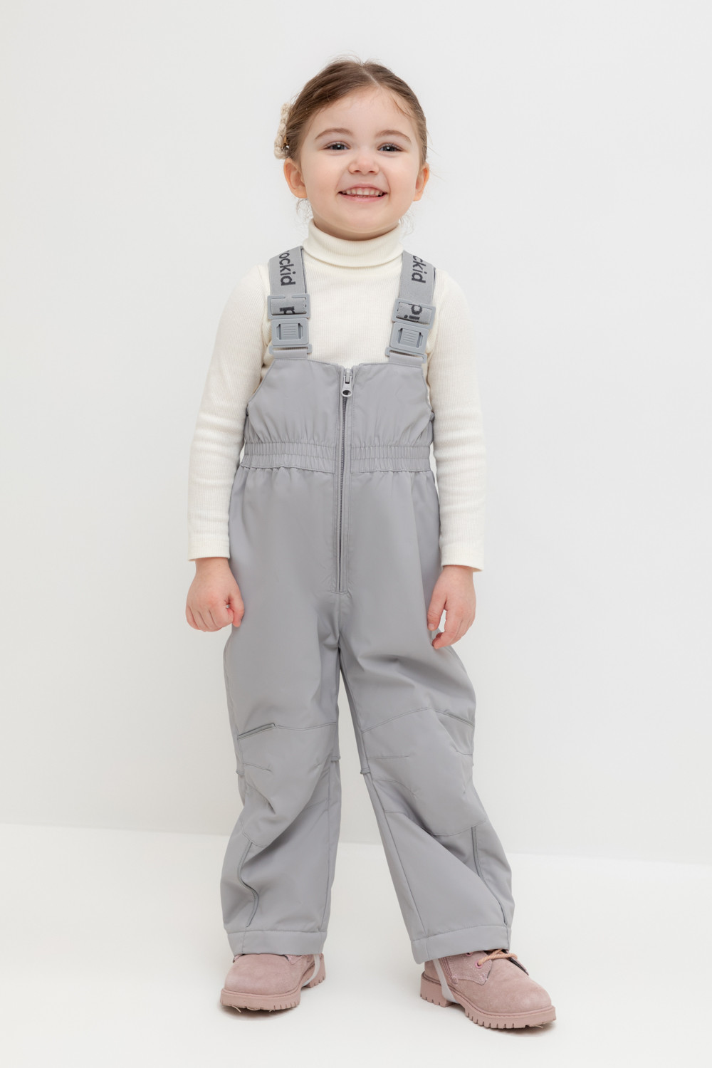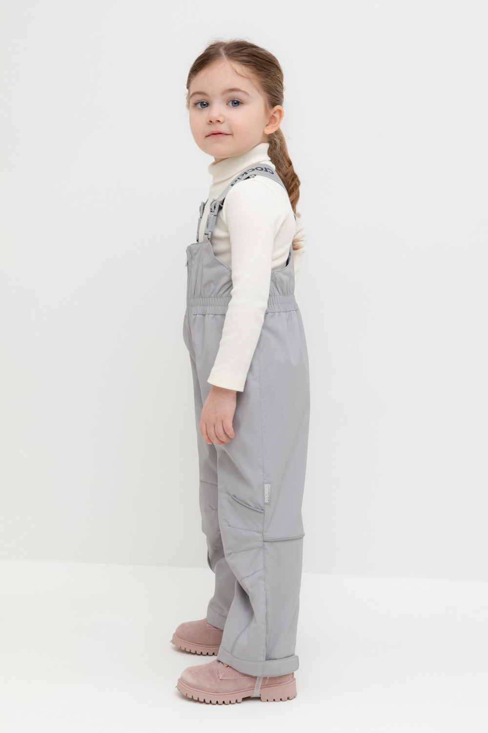 Демисезонный полукомбинезон детский с утеплителем 60г/м2. Выполнен из мембранной ткани с дополнительной тефлоновой обработкой. Данный вид обработки предохраняет изделие от загрязнения и лучше отводит влагу. Подклад из 100% полиэстра. Эластичные лямки для удобства регулируются по длине. Область коленей дополнительно усилена деталями из основной ткани. Низ на резинке, регулируется по ширине при помощи липучки. Для фиксации полукомбинезона используются съемные силиконовые штрипки. Во всех изделиях верхнего ассортимента для безопасности ребенка предусмотрены светоотражающие элементы.