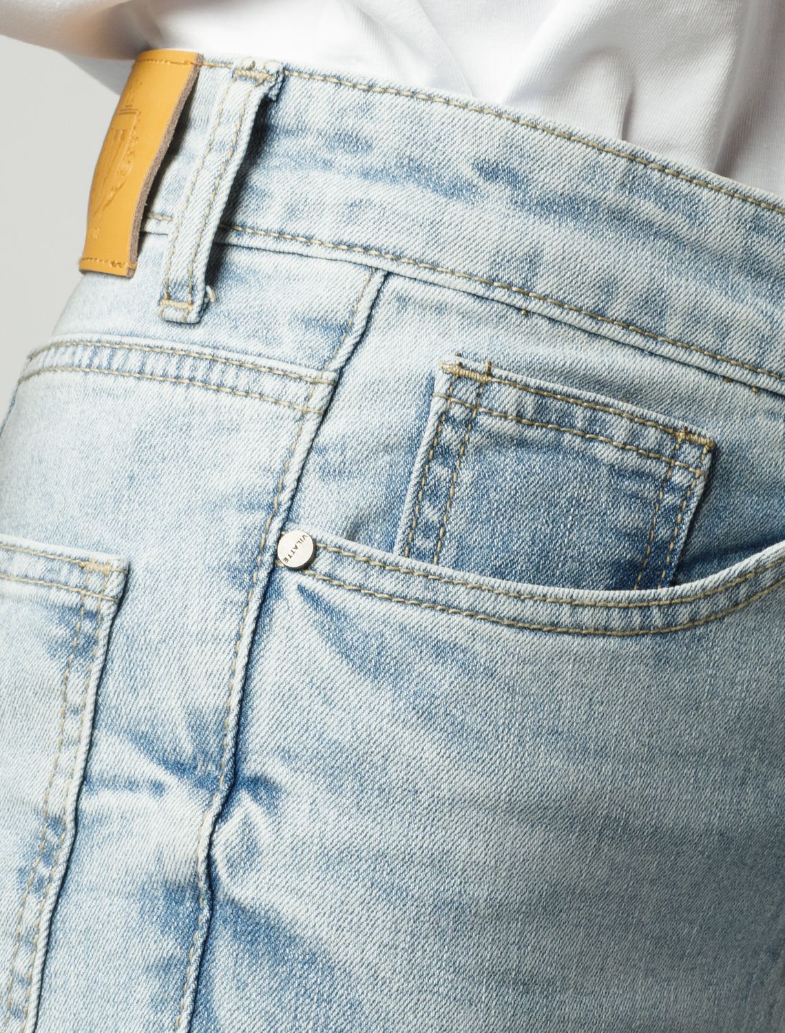Джинсы с легкой стиркой выполнены из эластичного денима. Модель прямого кроя с посадкой по фигуре. Эластан в составе гарантирует комфорт и предотвращает вытягивание. Модель найдет свое место в любом гардеробе на все случаи жизни. Изделие дополнено фирменным патчем.