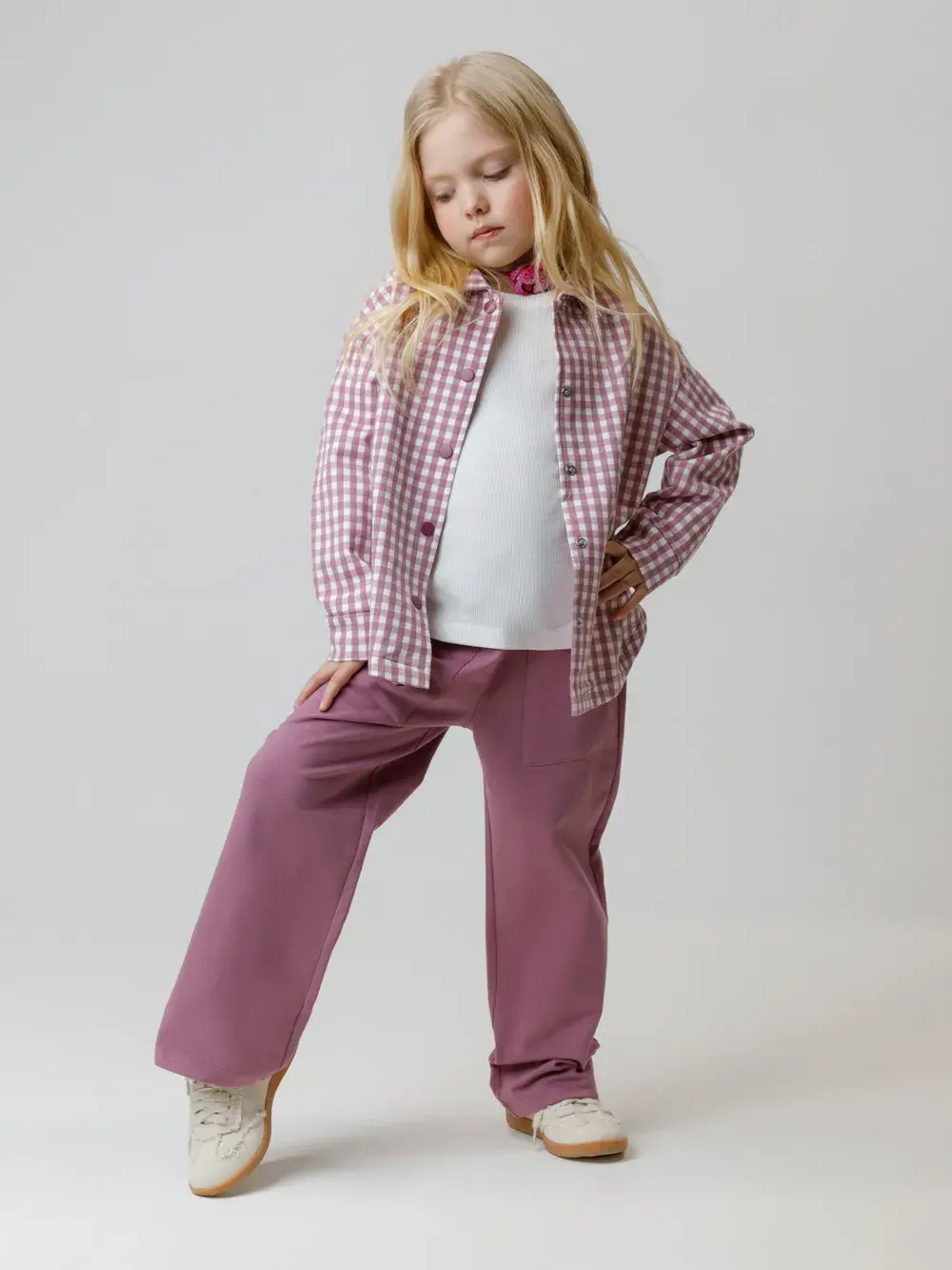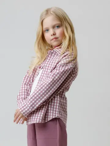 рубашка для девочки КР 302567/темная орхидея,маленькая клетка к593