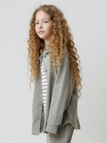 Рубашка свободного кроя для девочки из мягкого трикотажа селаник с peach эффектом. Peach эффект достигается с помощью технологии обработки полотна, при которой на его поверхности создаётся лёгкий ворс, напоминающий нежную текстуру кожи персика. Модель с закруглённым низом и спущенным плечом. Застёгивается на пуговицы. Изделие сохраняет цвет и форму после многократных стирок. Все трикотажные полотна производятся в соответствии с нормами швейцарского сертификата ЭкоТекс.