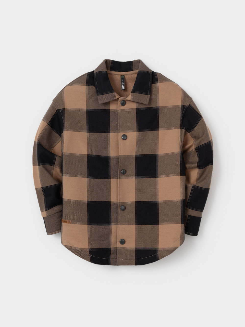 Свободная трикотажная рубашка для мальчика из мягкого петельчатого футера. Застёгивается на кнопки. Модель с закругленным низом и спущенным плечом. Рисунок в клетку выполнен из стойких текстильных гипоаллергенных красителей. Изделие сохраняет цвет и форму после многократных стирок. Все трикотажные полотна производятся в соответствии с нормами швейцарского сертификата ЭкоТекс.