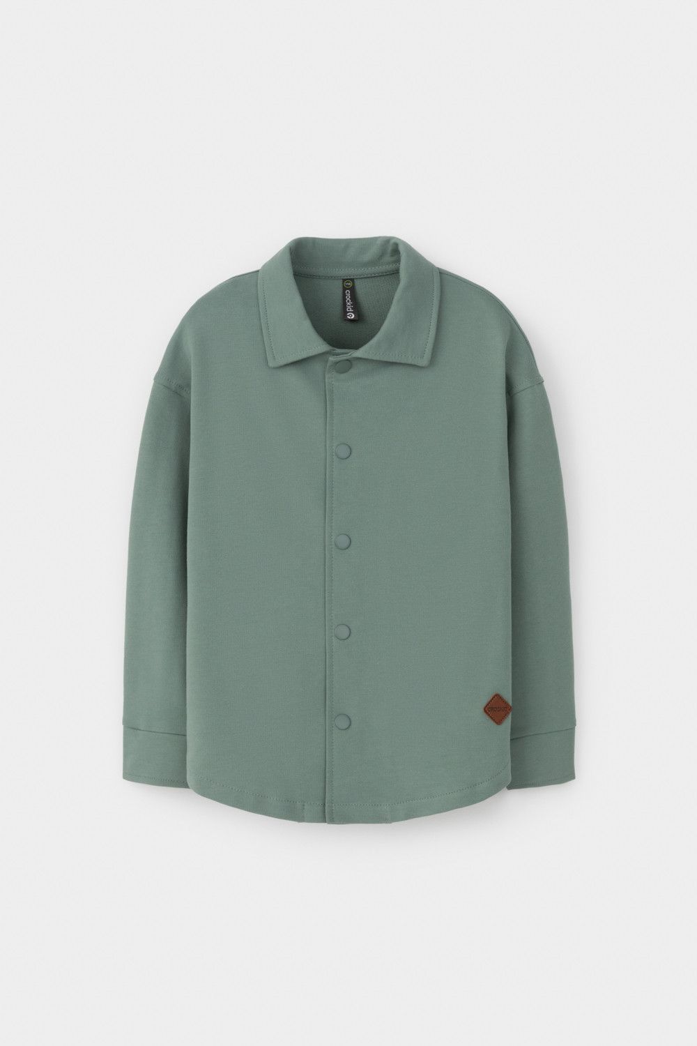 Свободная трикотажная рубашка для мальчика из мягкого петельчатого футера. Застёгивается на кнопки. Модель с закругленным низом и спущенным плечом.