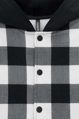 Свободная трикотажная рубашка для мальчика с капюшоном. Выполнена из мягкого петельчатого футера. Застёгивается на кнопки. Модель с закругленным низом и спущенным плечом. По бокам разрезы.