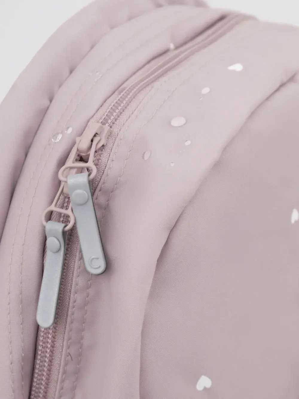 Детский рюкзак из мембранной ткани, обладающей водоотталкивающими свойствами. Застёгивается на молнию с двумя замками. Лямки регулируются по росту ребёнка. Предусмотрена дополнительная петля, чтобы носить рюкзак в руке или вешать его на крючок. Внутри карман из сетки. Спереди вместительный накладной карман на молнии. Светоотражающие элементы служат для дополнительной безопасности в тёмное время суток. Размер: 32х25 см