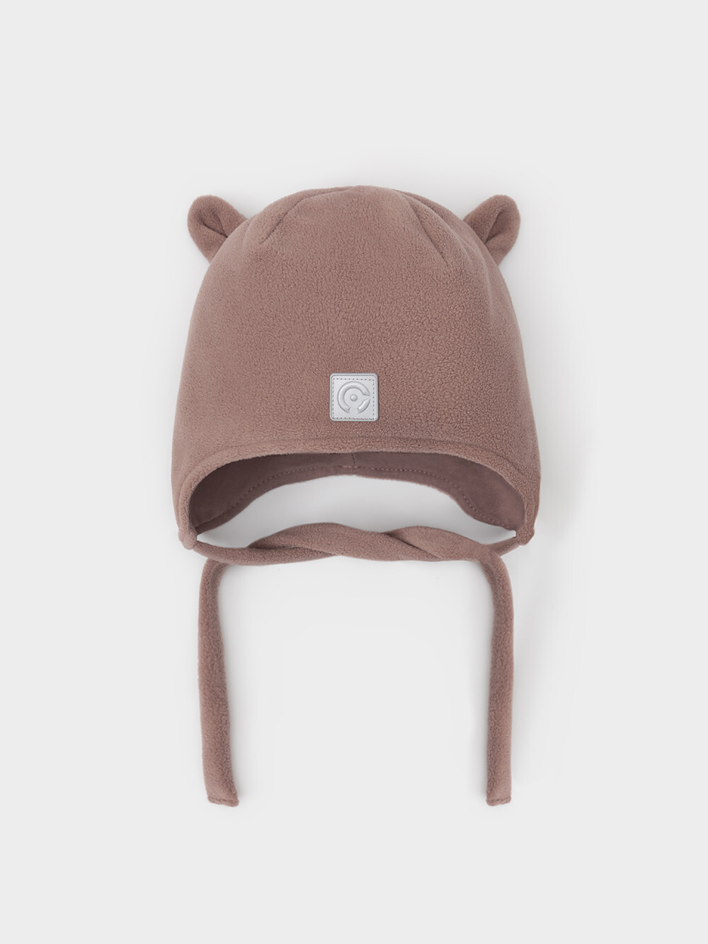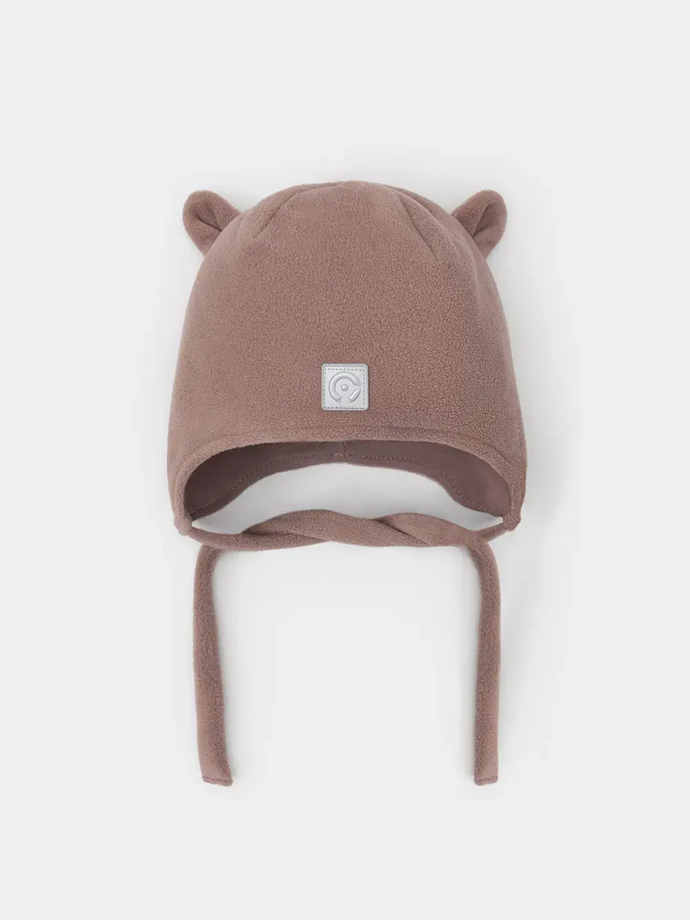 Флисовая шапка на завязках с мягким подкладом из натурального хлопка. Сверху украшена декоративными ушками из флиса. Спереди прикреплён светоотражатель, который обеспечивает дополнительную безопасность в тёмное время суток. Шапка сохраняет цвет и форму после многократных стирок.