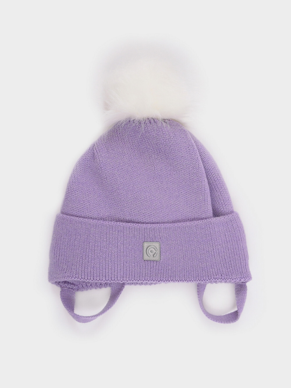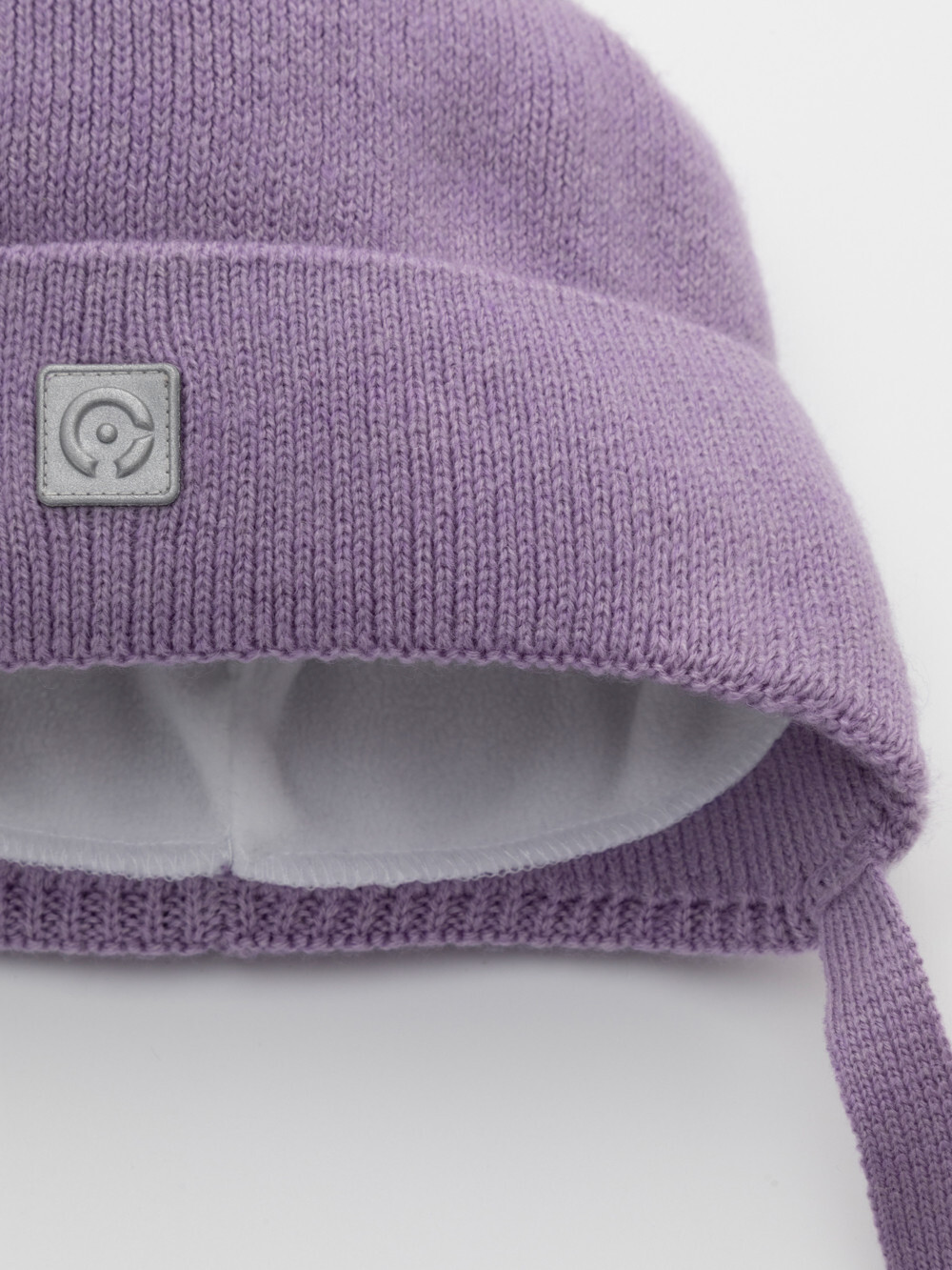 Шапка из полушерсти на завязках. Подклад из флиса. Полностью закрывает голову, уши и шею, защищая ребёнка от холодного воздуха и ветра. На макушке помпон. Изделие сохраняет форму и стойкий цвет после многочисленных стирок.