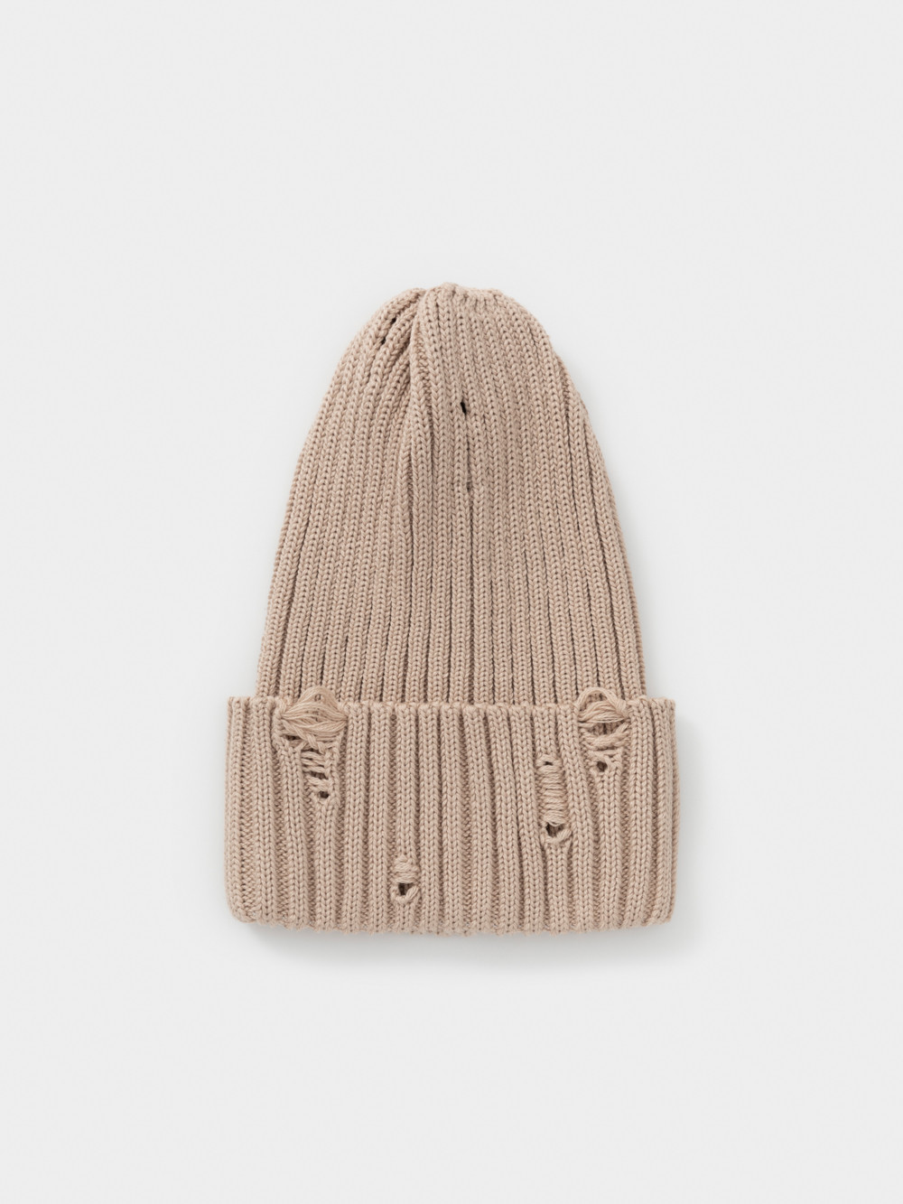 Стильная демисезонная шапка с декоративными разрывами. Изготовлена из высококачественной пряжи, в состав которой входят хлопок и акрил. Комфортно прилегает к голове, обеспечивая защиту от холода и хороший теплообмен. Изделие хорошо переносит многократные стирки, сохраняя цвет и форму.