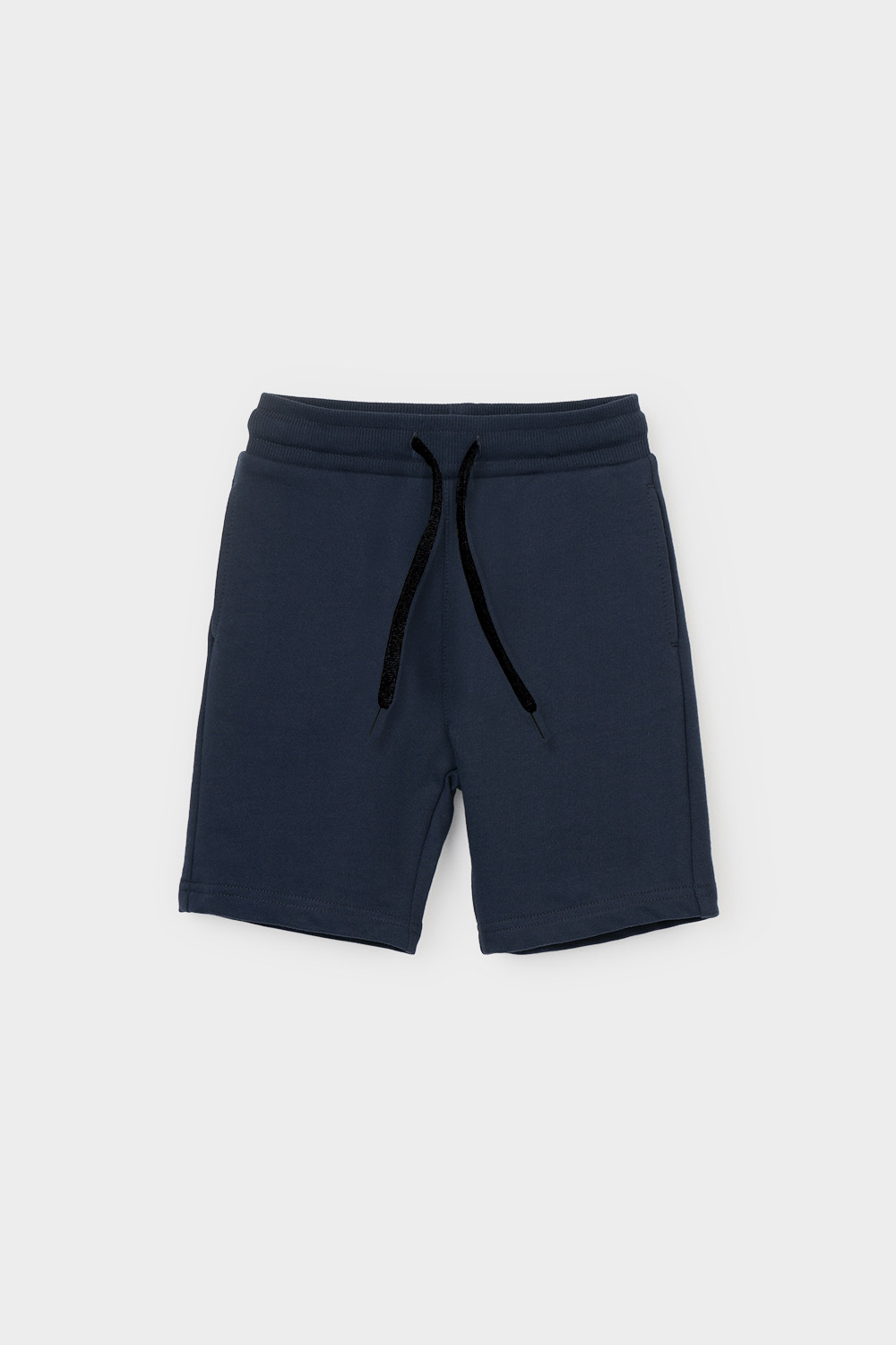 Трикотажные шорты для мальчика из петельчатого футера. Эластичный пояс на резинке регулируется по ширине с помощью шнурка, по бокам два удобных кармана.