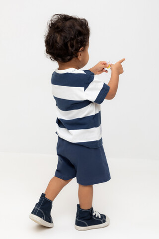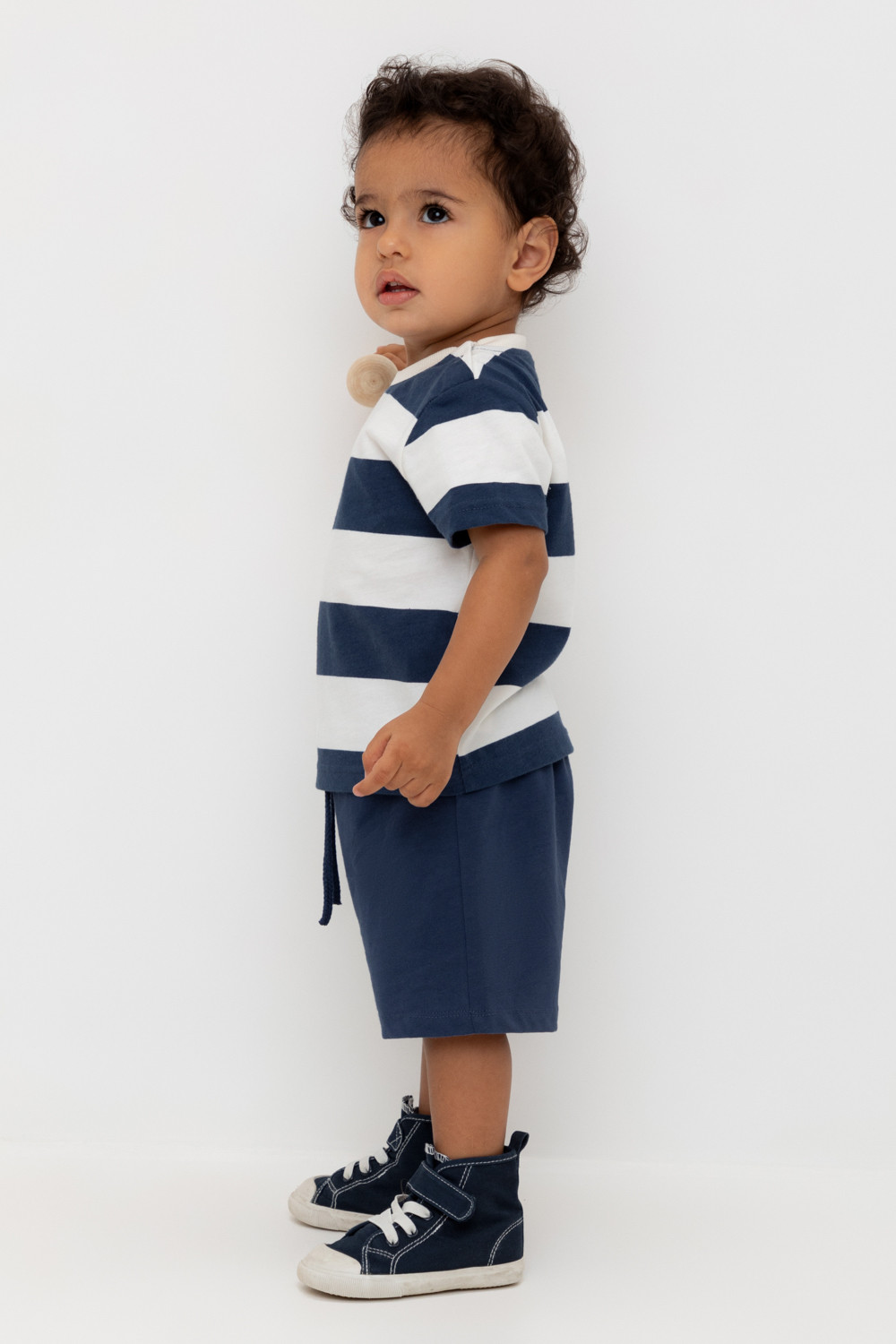 Легкие трикотажные шорты для мальчика из высококачественного хлопка. Эластичный пояс регулируется при помощи шнурка.