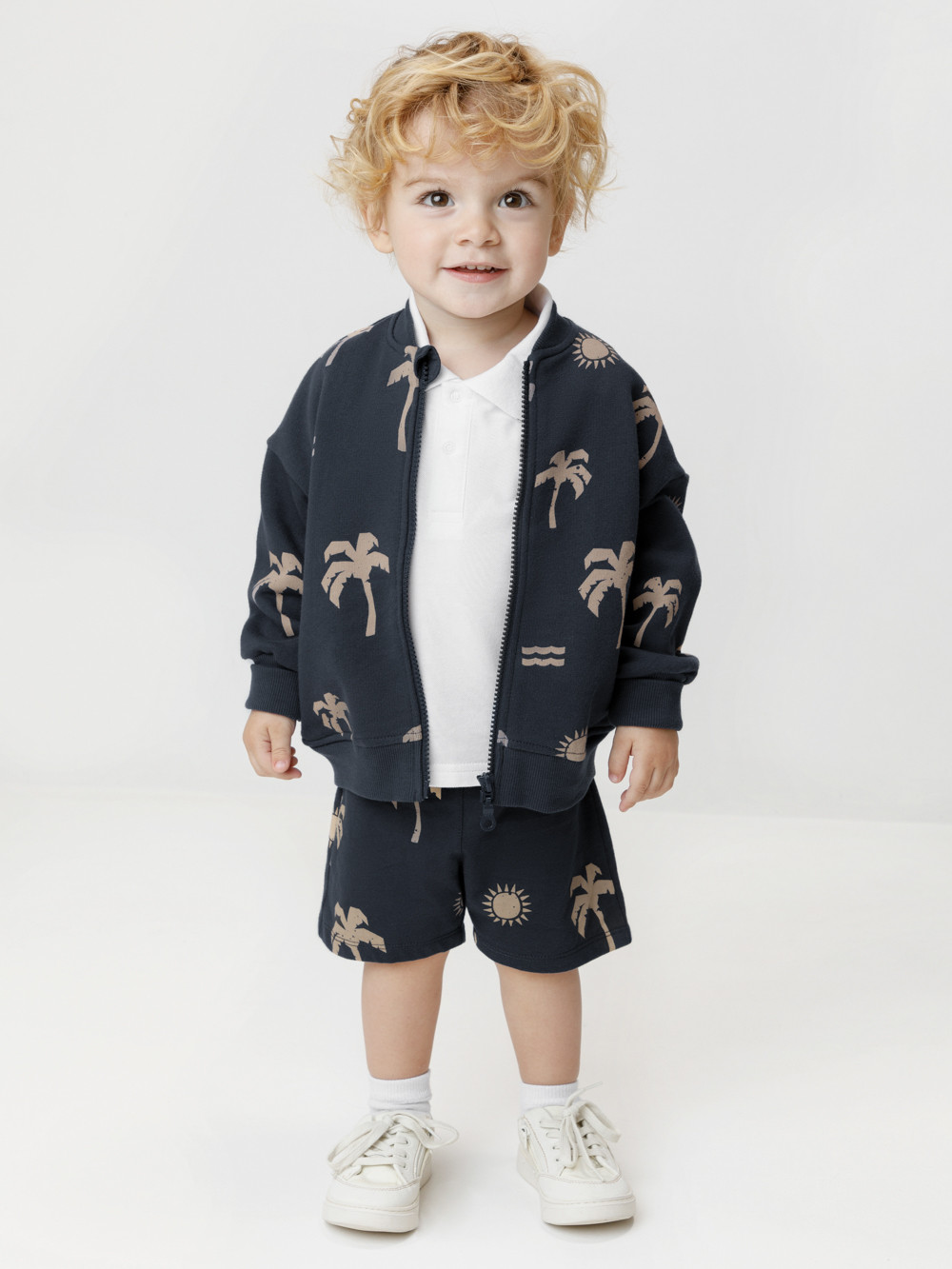 Лёгкие шорты для мальчика из гладкого трикотажа супрем. Эластичный пояс на резинке регулируется по ширине с помощью шнурка. Изделие сохраняет цвет и форму после многократных стирок. Все трикотажные полотна производятся в соответствии с нормами швейцарского сертификата ЭкоТекс.
