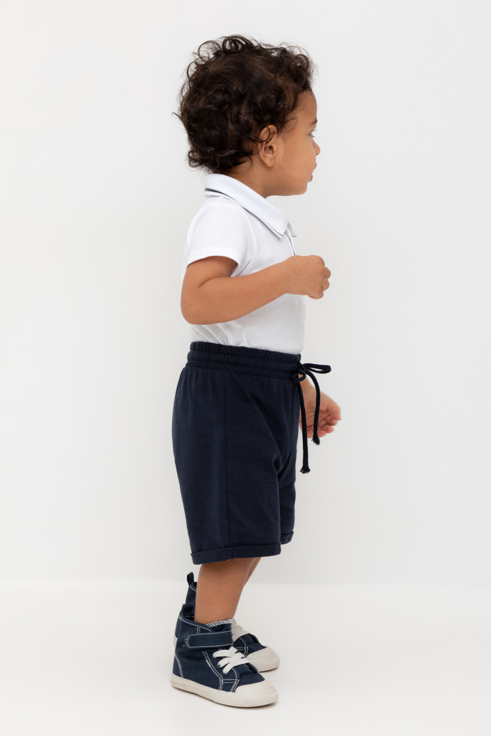 Легкие трикотажные шорты для мальчика из высококачественного хлопка. Эластичный пояс регулируется при помощи шнурка.